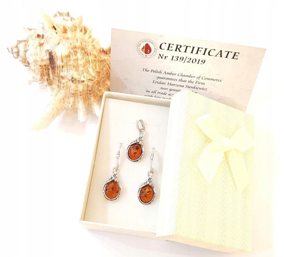 Komplet KOLCZYKI+WISIOREK BURSZTYN-SREBRO +CERTYF.