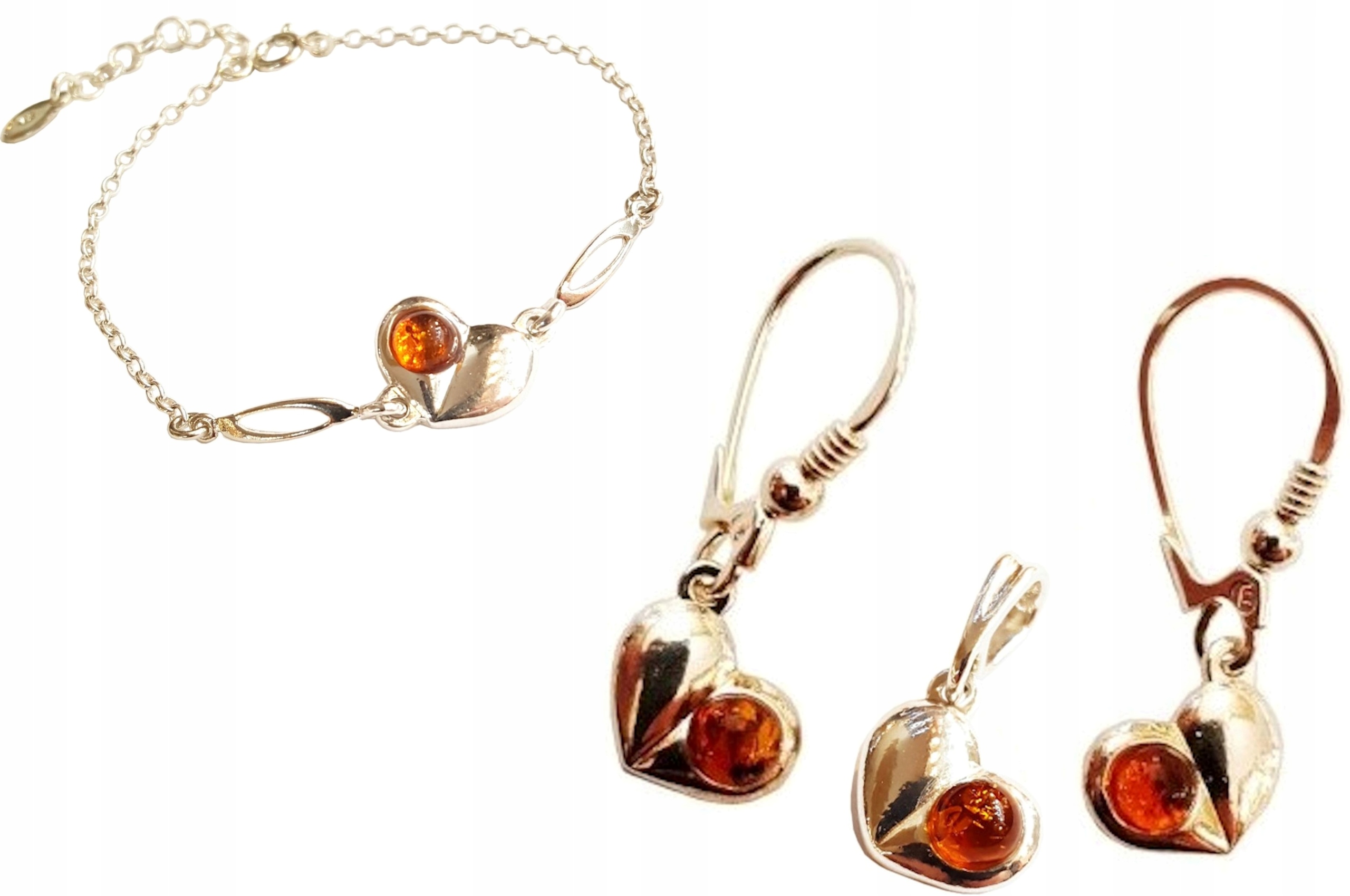 Oferujemy Państwu wyjątkowe kolczyki srebrne pr. 925 + wisiorek + bransoletka z bursztynem.