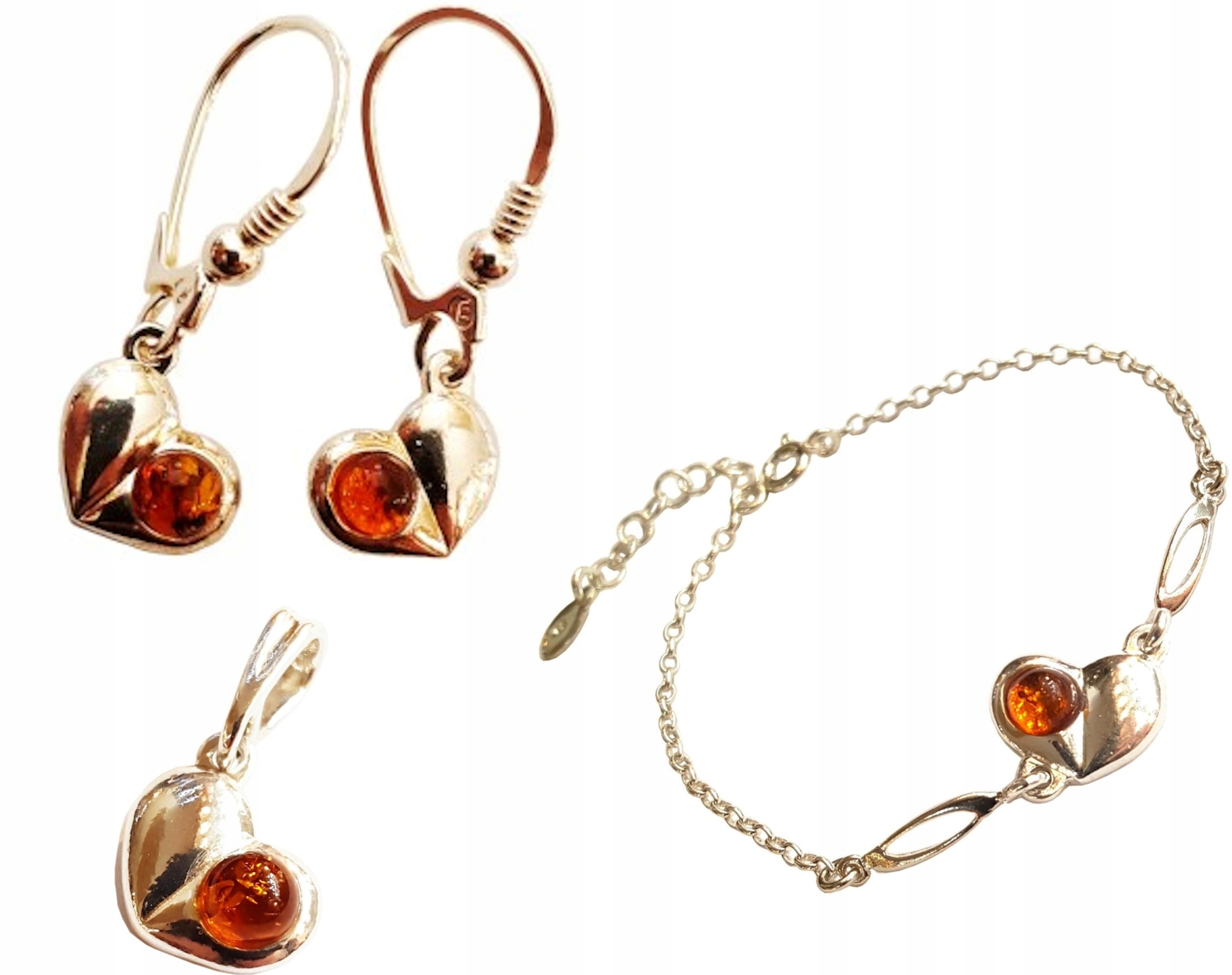KOLCZYKI + WISIOREK + BRANSOLETKA z naturalnym BURSZTYNEM