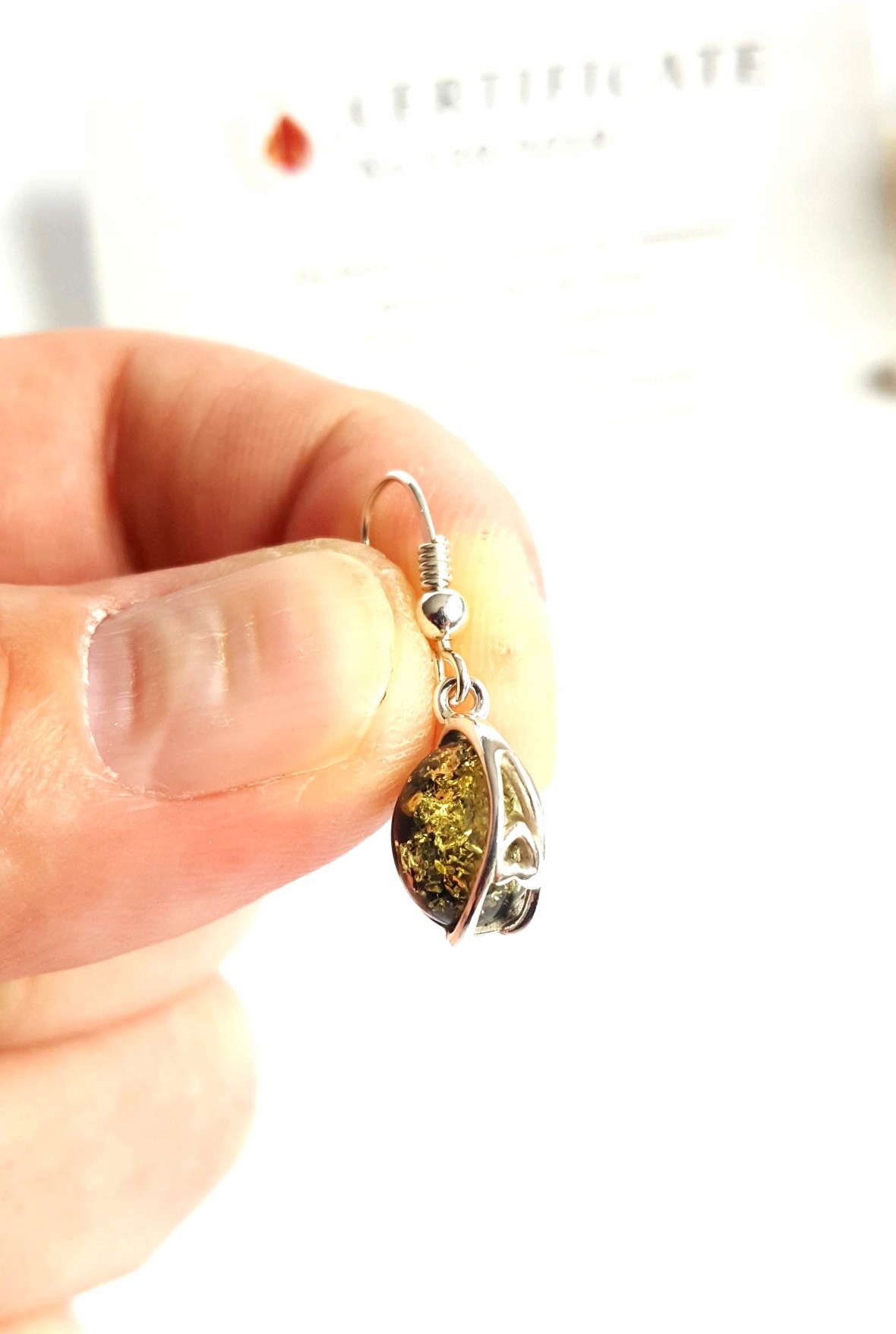 Prawdziwy BURSZTYN kolor *ZIELONY* SREBRO 925
