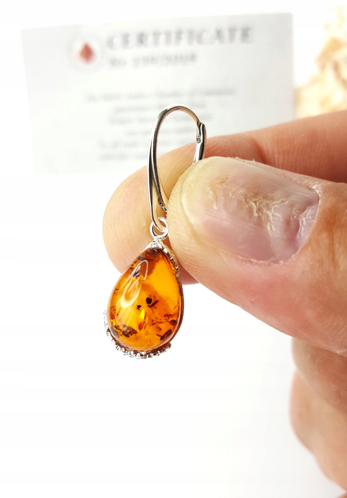 *** Naturalny i prawdziwy BURSZTYN *** SREBRO 925 *** CERTYFIKAT AUTENTYCZNOŚCI ***