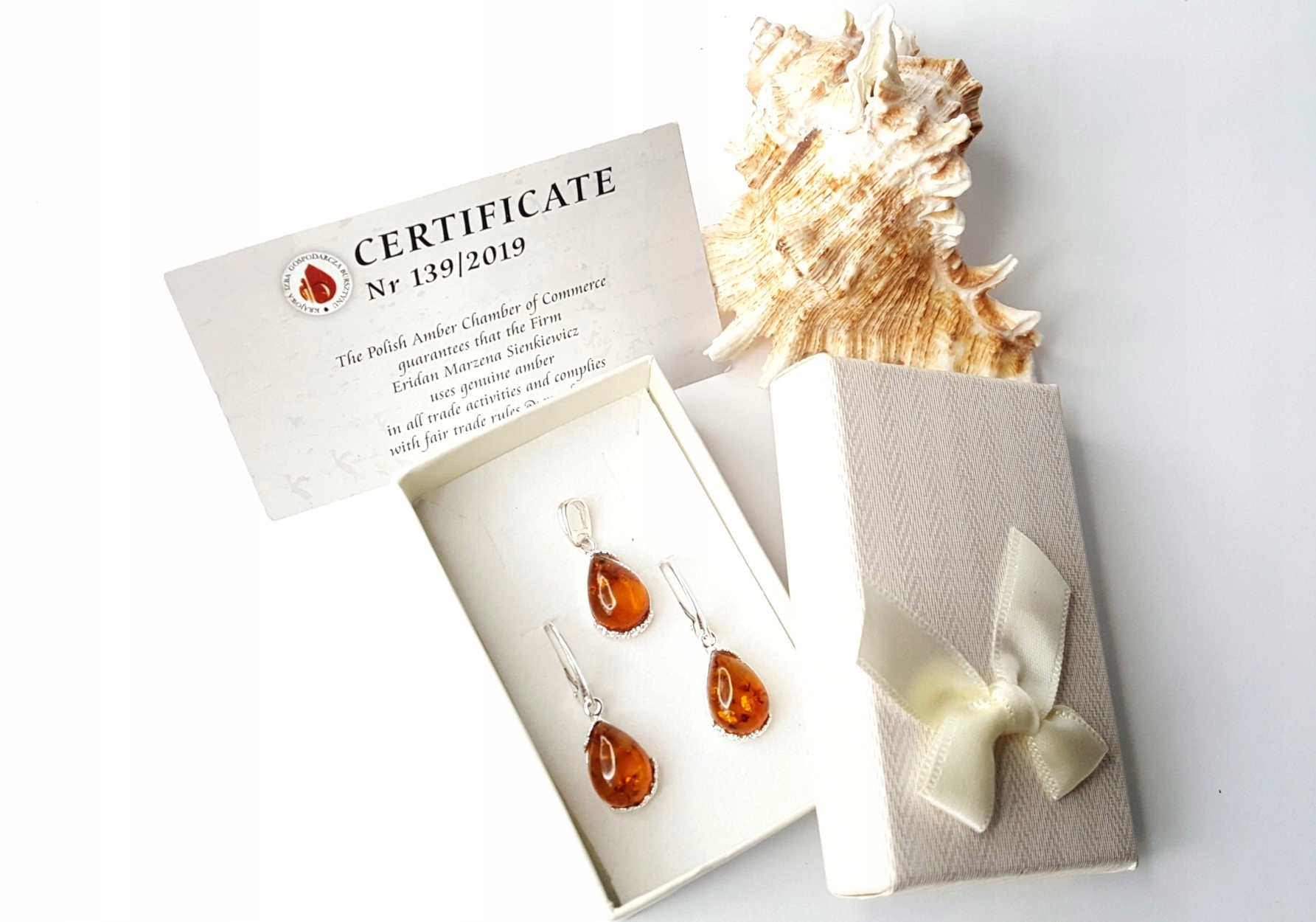 Kupując Nasz komplet srebrnych kolczyków i zawieszki z bursztynem możecie być Państwo pewni, że zostanie on zapakowany w bardzo ładne pudełko jubilerskie. Zupełnie za darmo. Pudełka wybieramy losowo, zawsze kierując się tym, aby idealnie pasowały do wybranego przez Państwa zestawu.