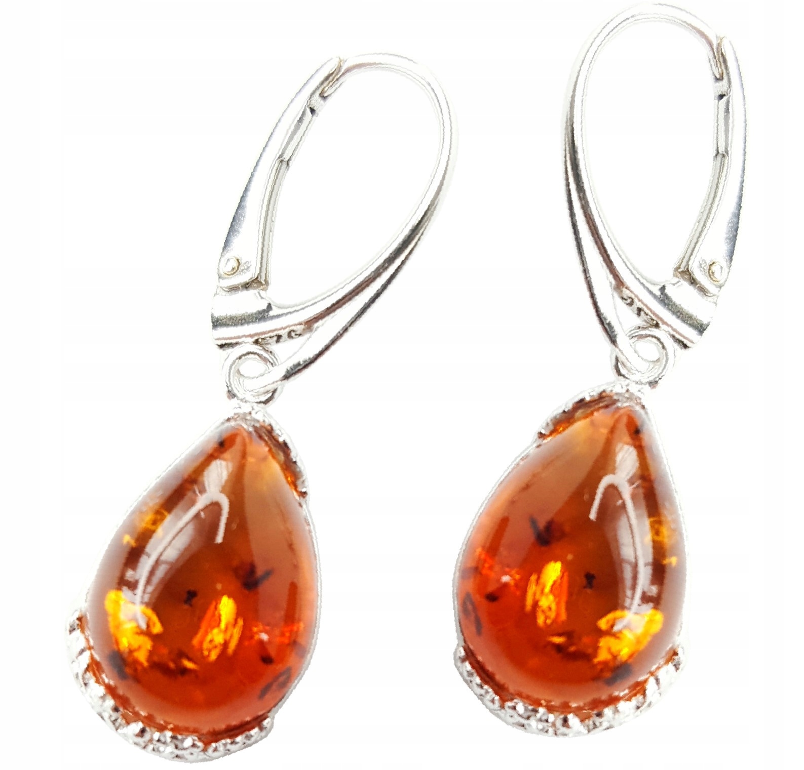 Oferujemy Państwu wyjątkowy KOMPLET srebrny z bursztynem – KOLCZYKI + WISIOREK.