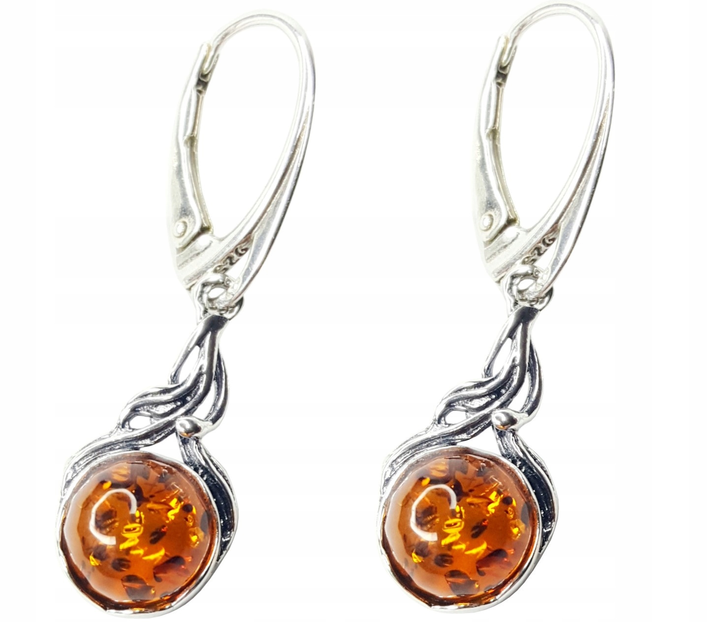 Prawdziwy BURSZTYN (kolor brązowy-koniak) SREBRO 925