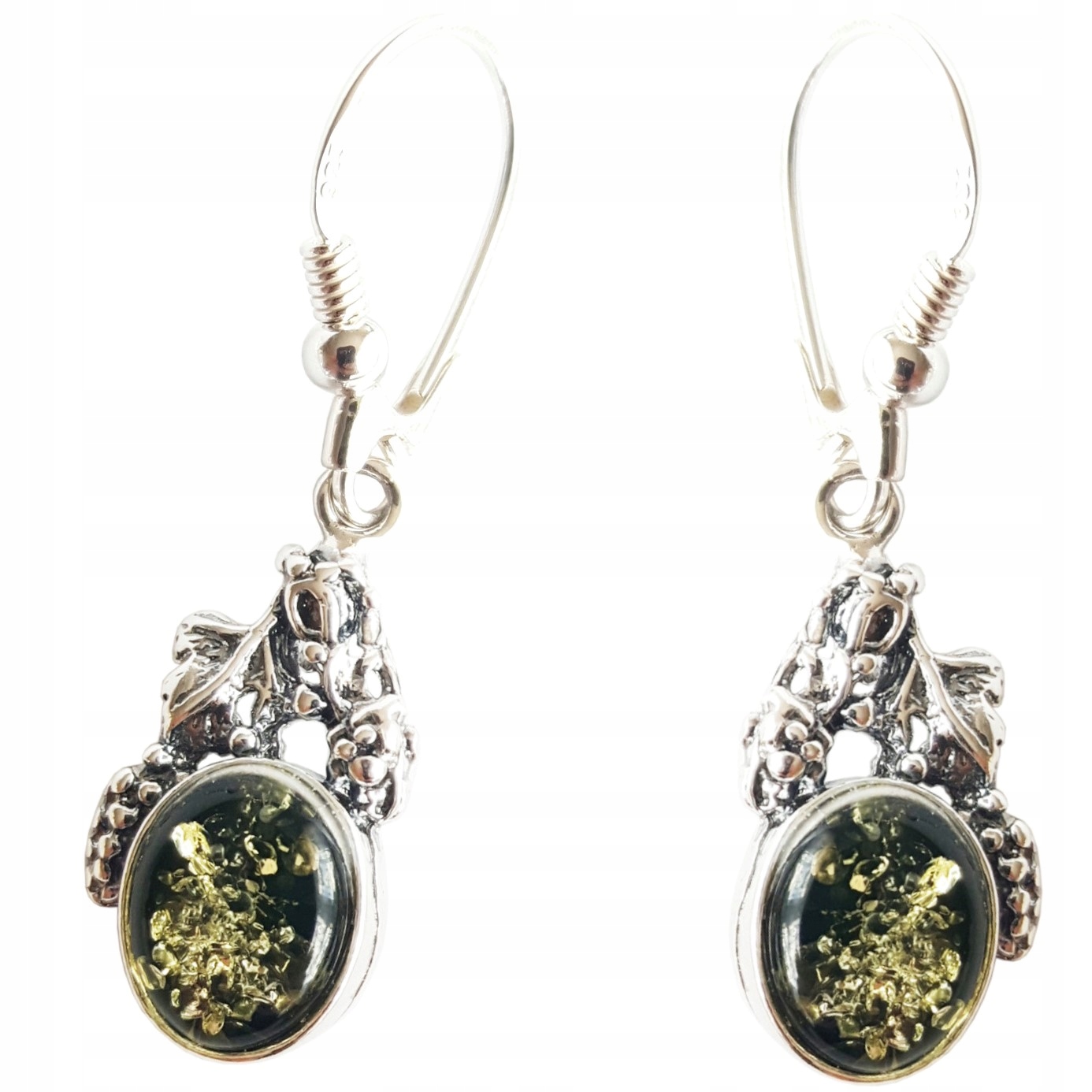Prawdziwy BURSZTYN (kolor ZIELONY) SREBRO 925