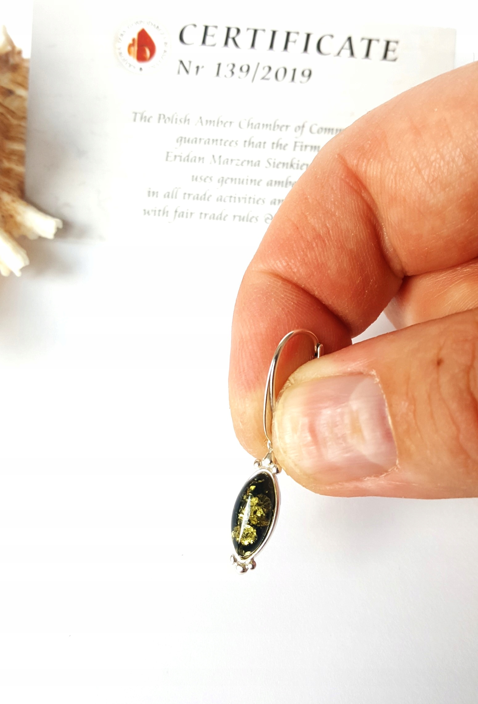 Zgodnie z posiadanym certyfikatem stosujemy w obrocie jedynie bursztyn prawdziwy.