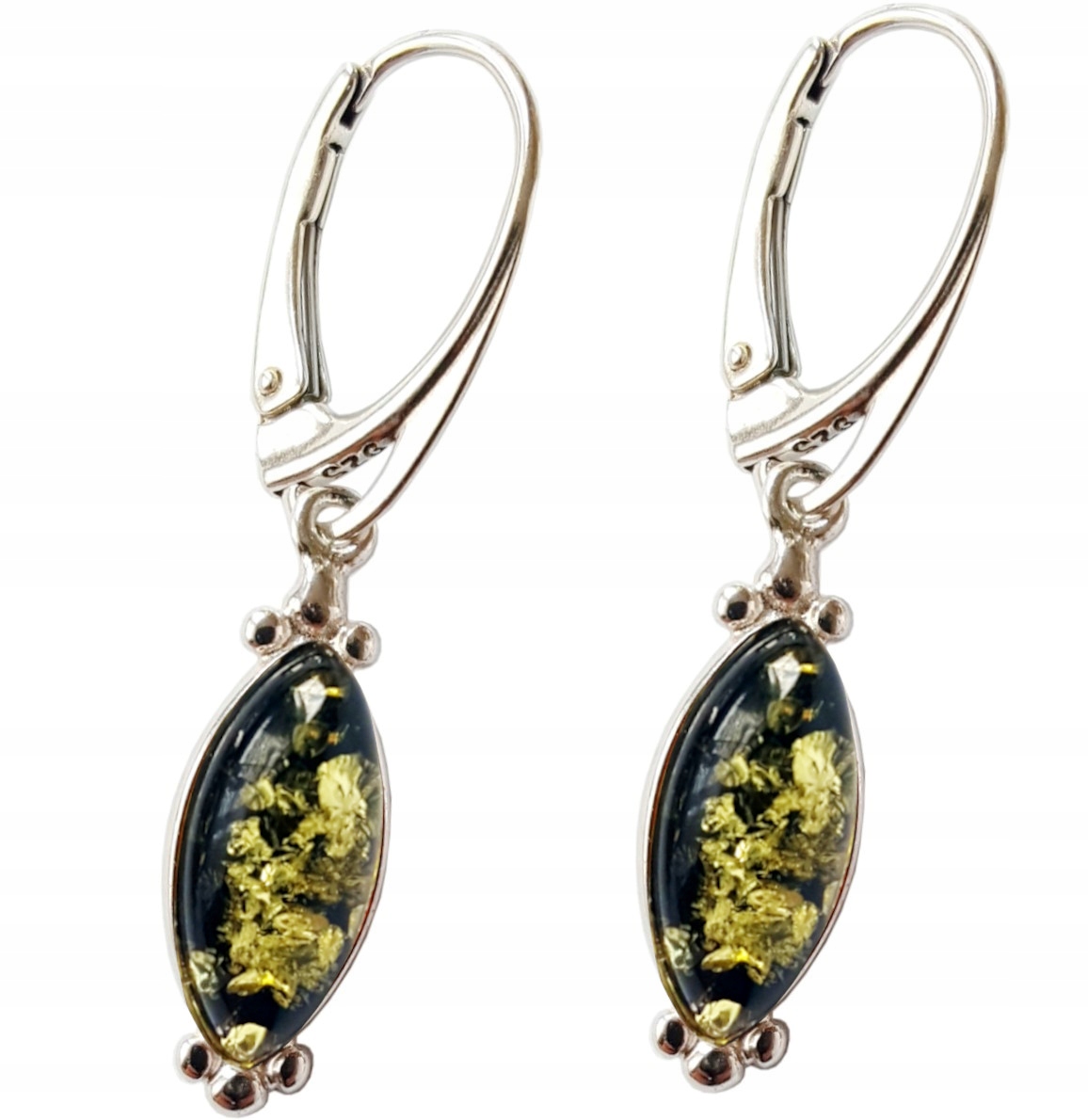 Prawdziwy BURSZTYN kolor *ZIELONY* SREBRO 925