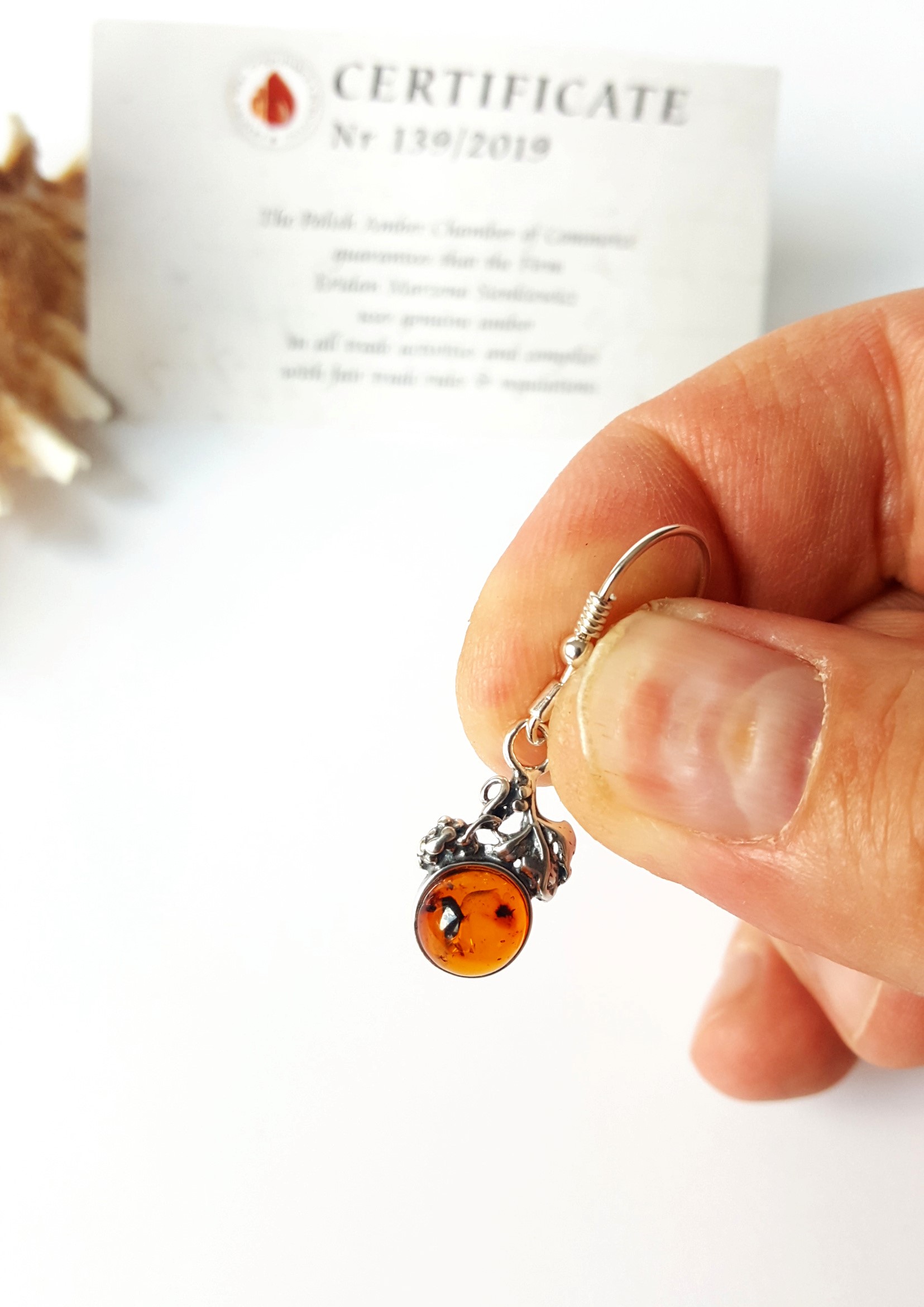 *** Naturalny i prawdziwy BURSZTYN *** SREBRO 925 *** CERTYFIKAT AUTENTYCZNOŚCI ***