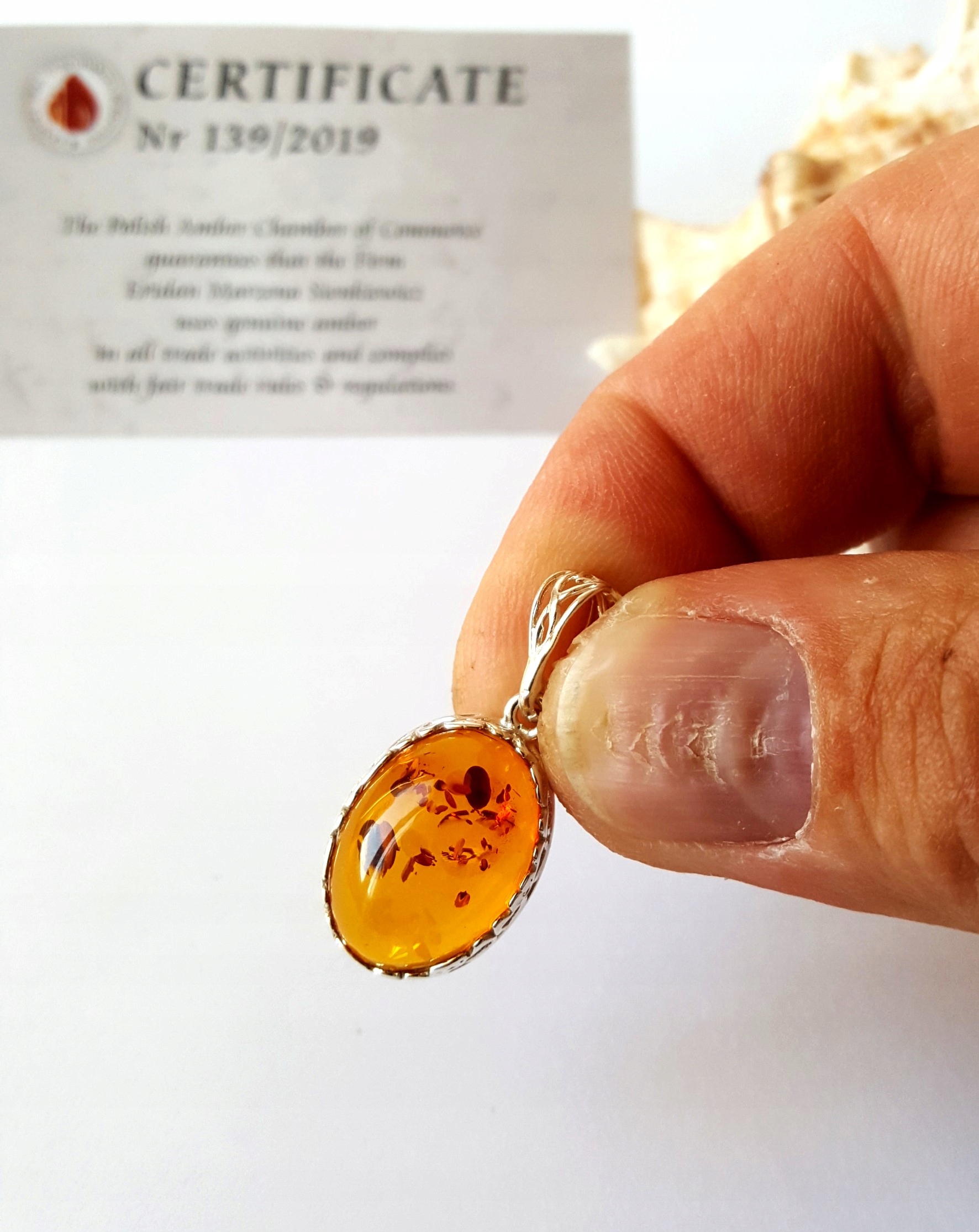 Zgodnie z posiadanym certyfikatem stosujemy w obrocie jedynie bursztyn prawdziwy.