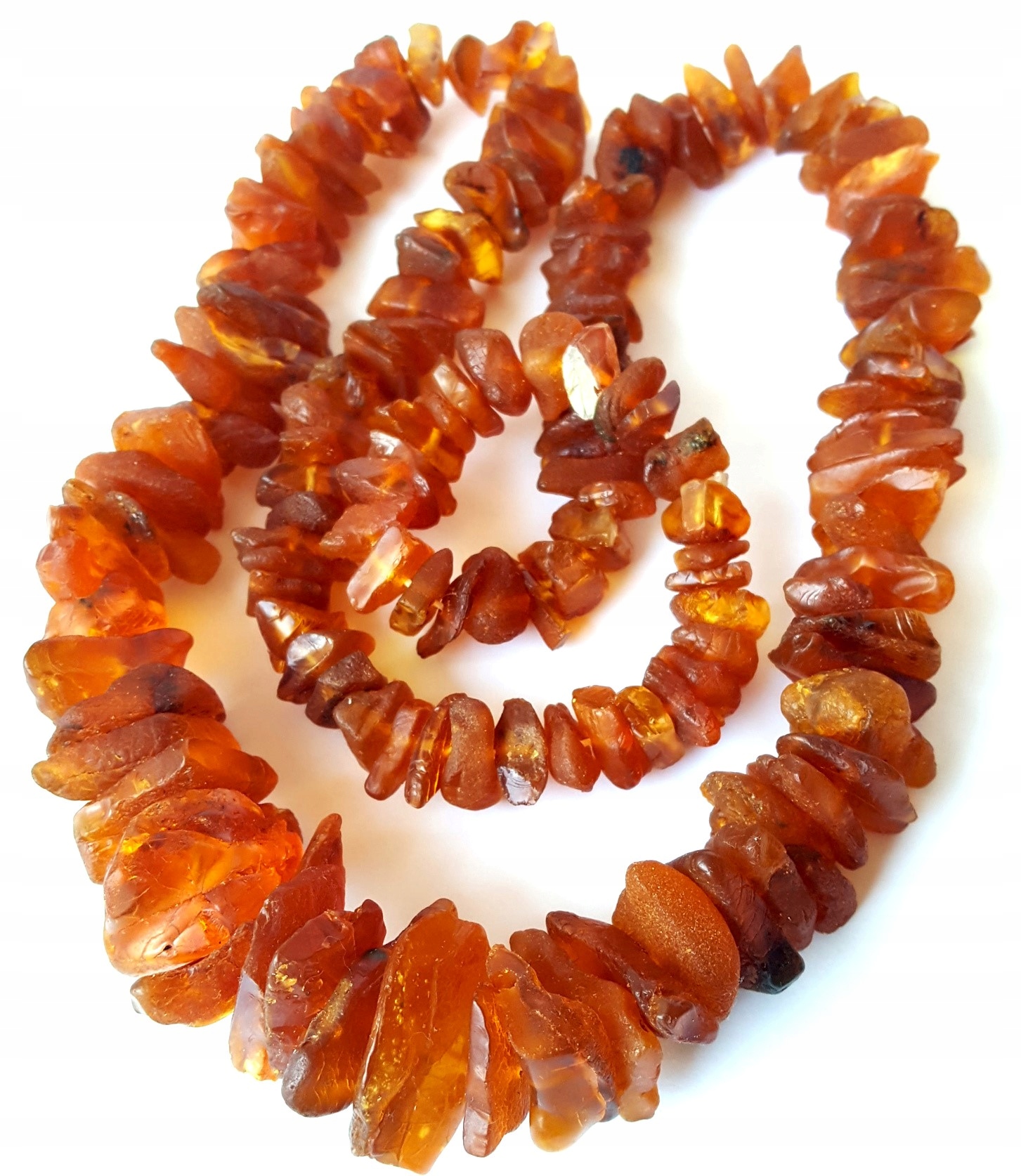 Oferujemy Państwu piękne KORALE z NIESZLIFOWANEGO NATURALNEGO BURSZTYNU w kształcie NIEREGULARNYM.
