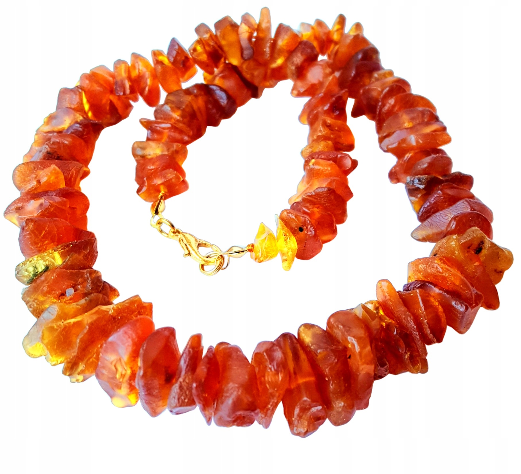 Oferujemy Państwu piękne KORALE z NIESZLIFOWANEGO NATURALNEGO BURSZTYNU w kształcie NIEREGULARNYM.