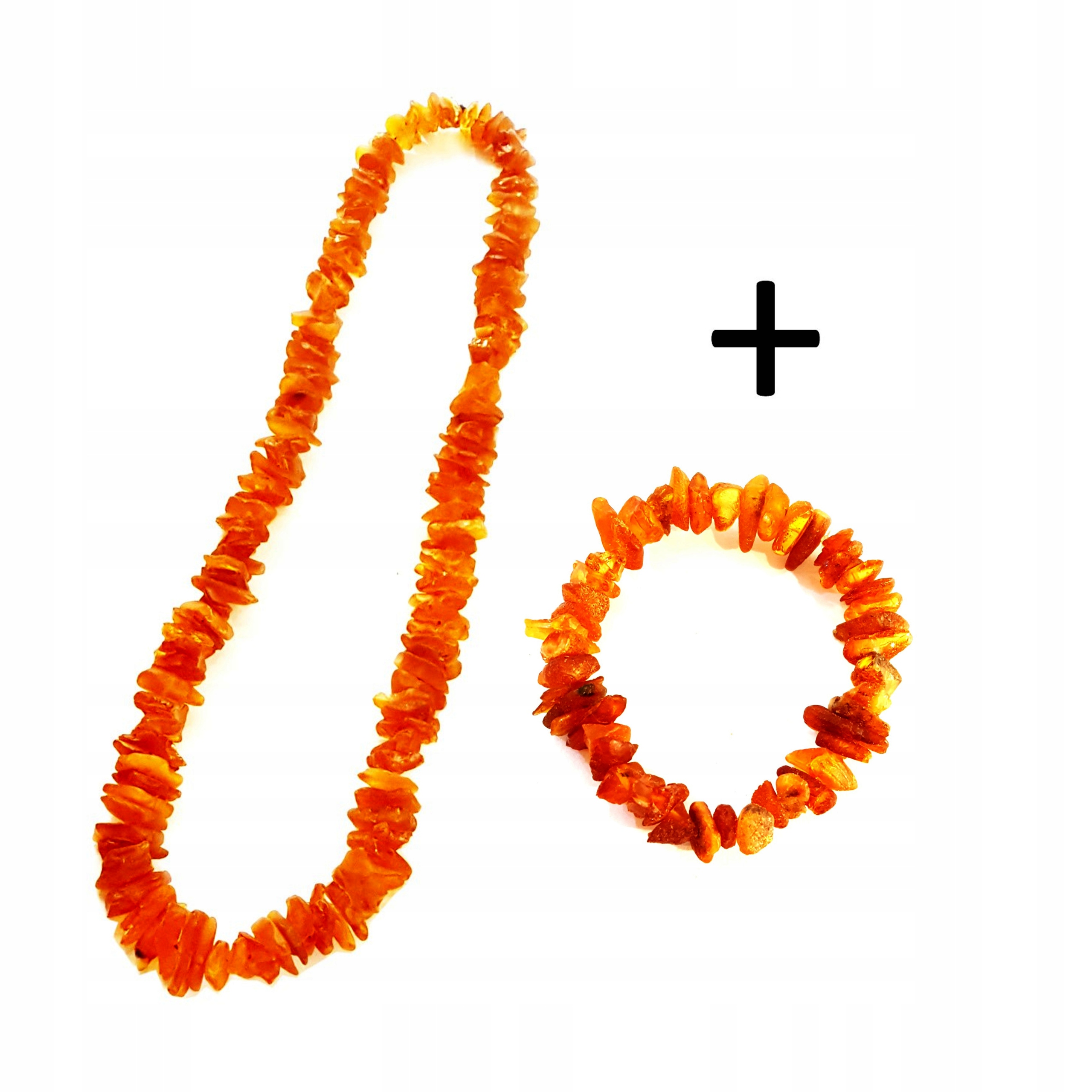 Oferujemy Państwu piękne KORALE z NIESZLIFOWANEGO NATURALNEGO BURSZTYNU wraz z BRANSOLETKĄ w kształcie NIEREGULARNYM.