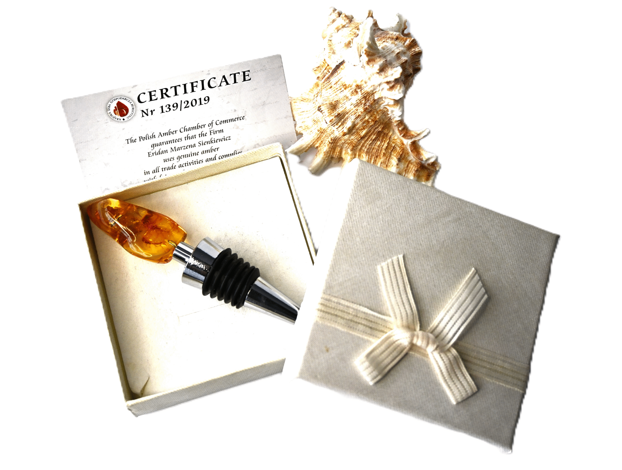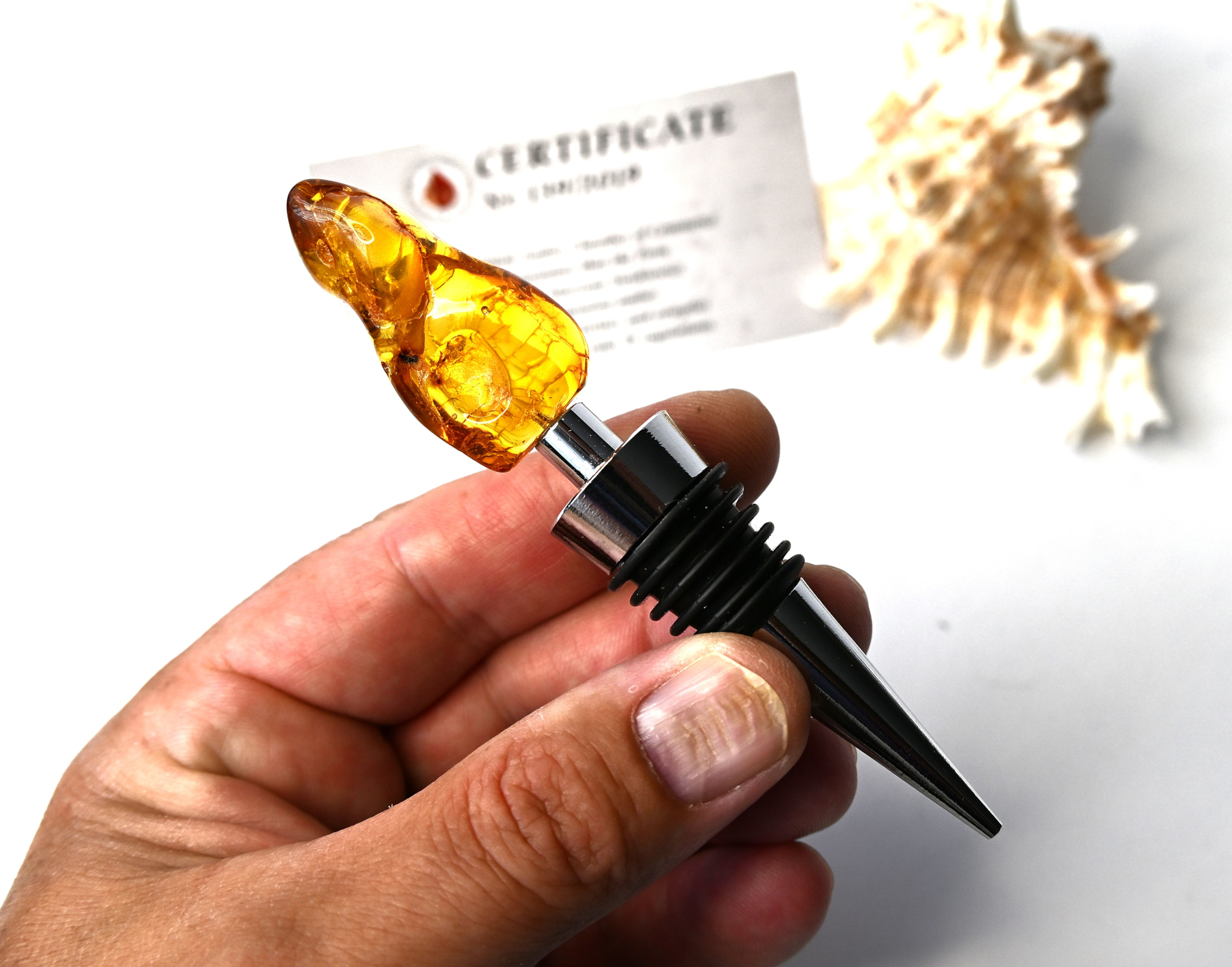 Oferowany KOREK zatyczka DO WINA jest zupełnie nowy i pochodzi od zaprzyjaźnionych lokalnych bursztynników – artystów.