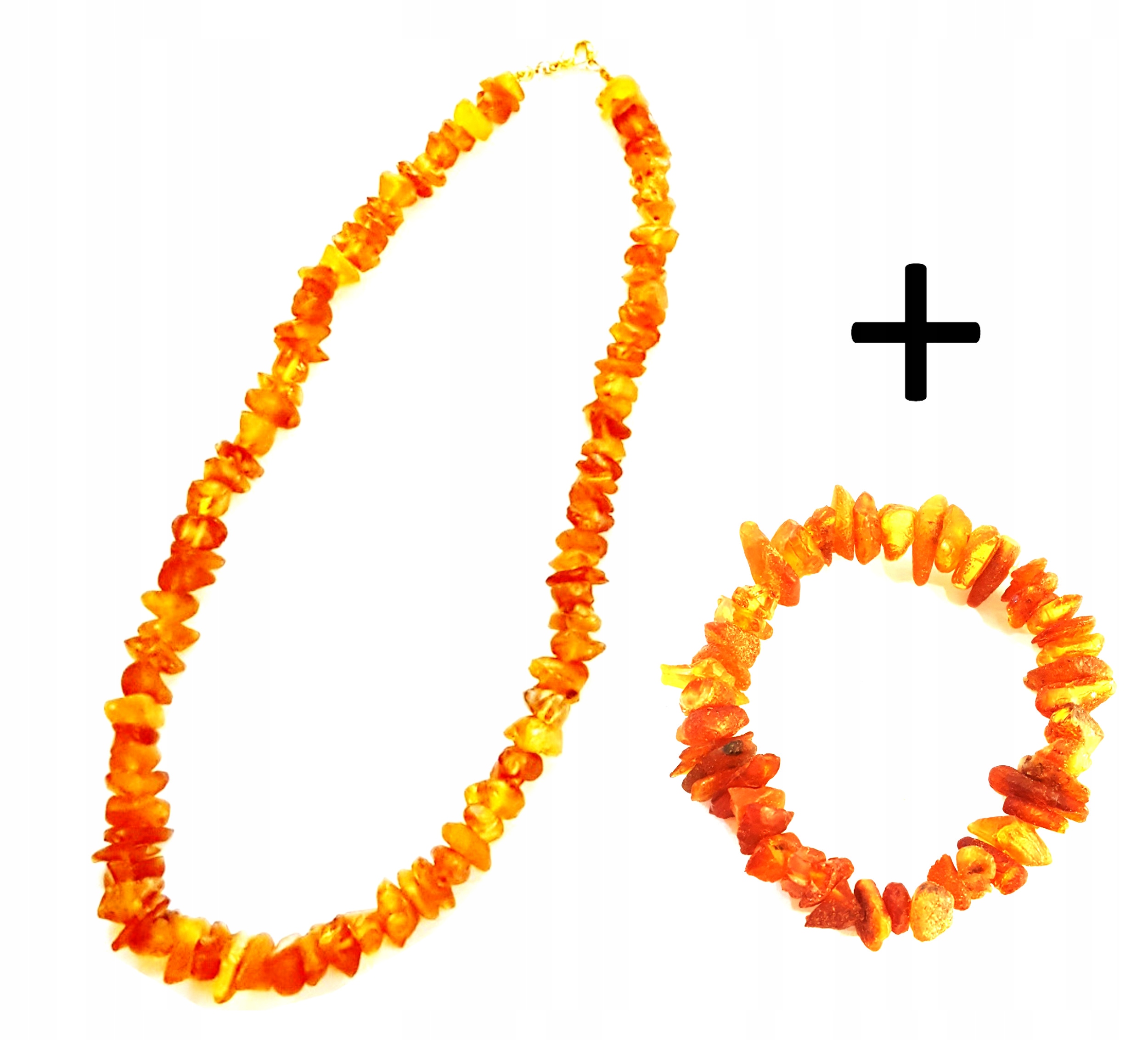 Oferujemy Państwu piękne KORALE z NIESZLIFOWANEGO NATURALNEGO BURSZTYNU wraz z BRANSOLETKĄ w kształcie NIEREGULARNYM.