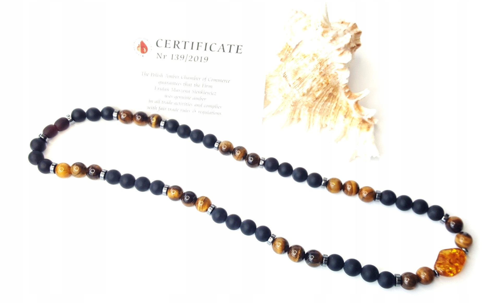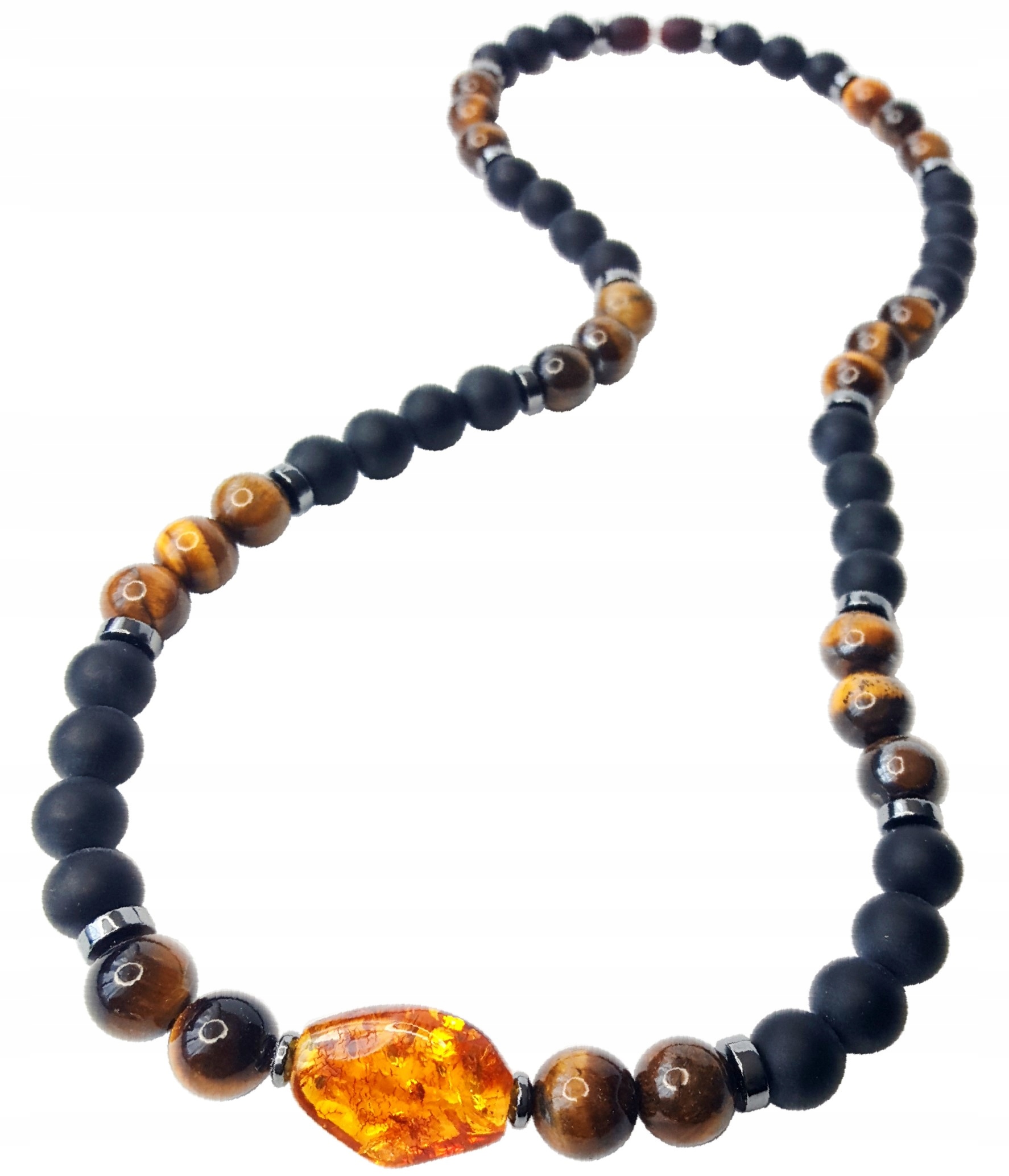 Oferujemy Państwu piękny NASZYJNIK MĘSKI z PRAWDZIWYM BURSZTYNEM oraz minerałami.
