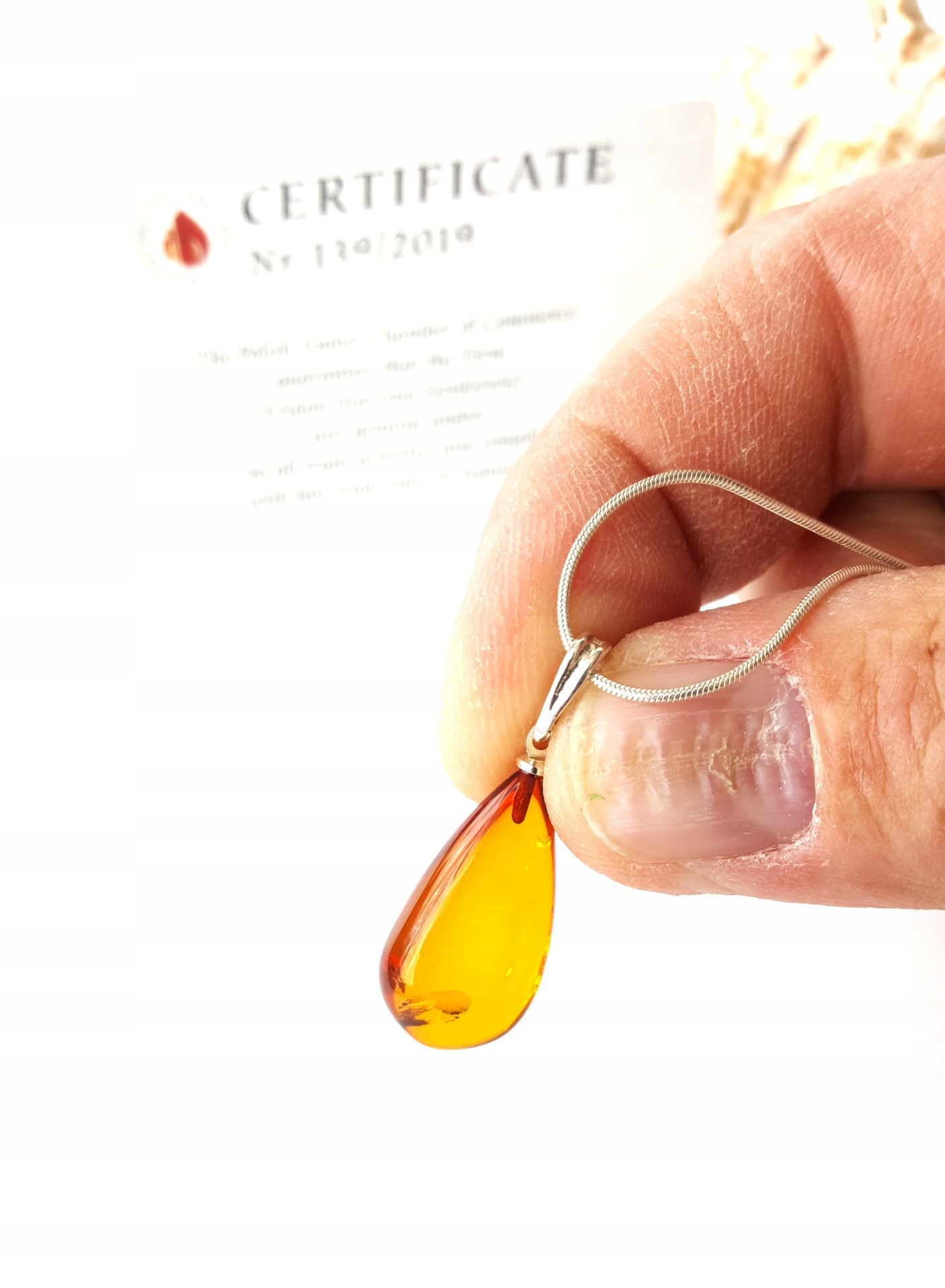 Zgodnie z posiadanym certyfikatem stosujemy w obrocie jedynie bursztyn prawdziwy.