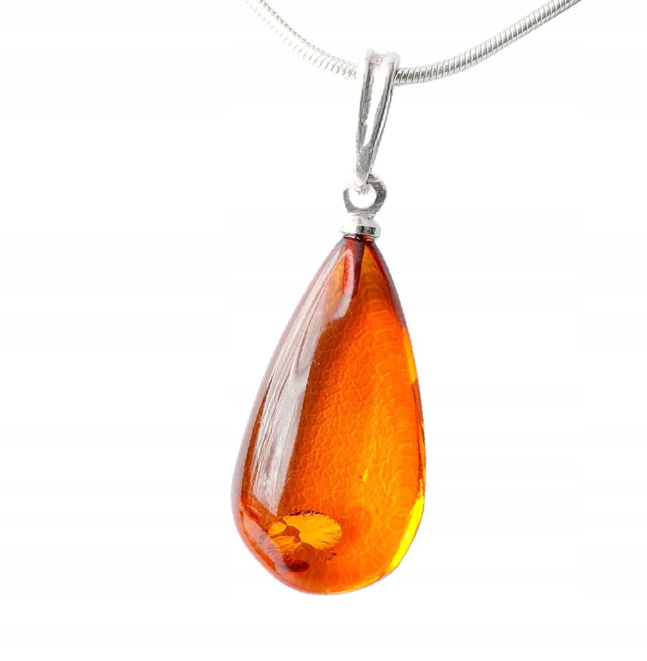 Oferowany naturalny WISIOREK BURSZTYNOWY ze srebrną zawieszką i ŁAŃCUSZKIEM jest zupełnie nowy i pochodzi z Naszej Pracowni.