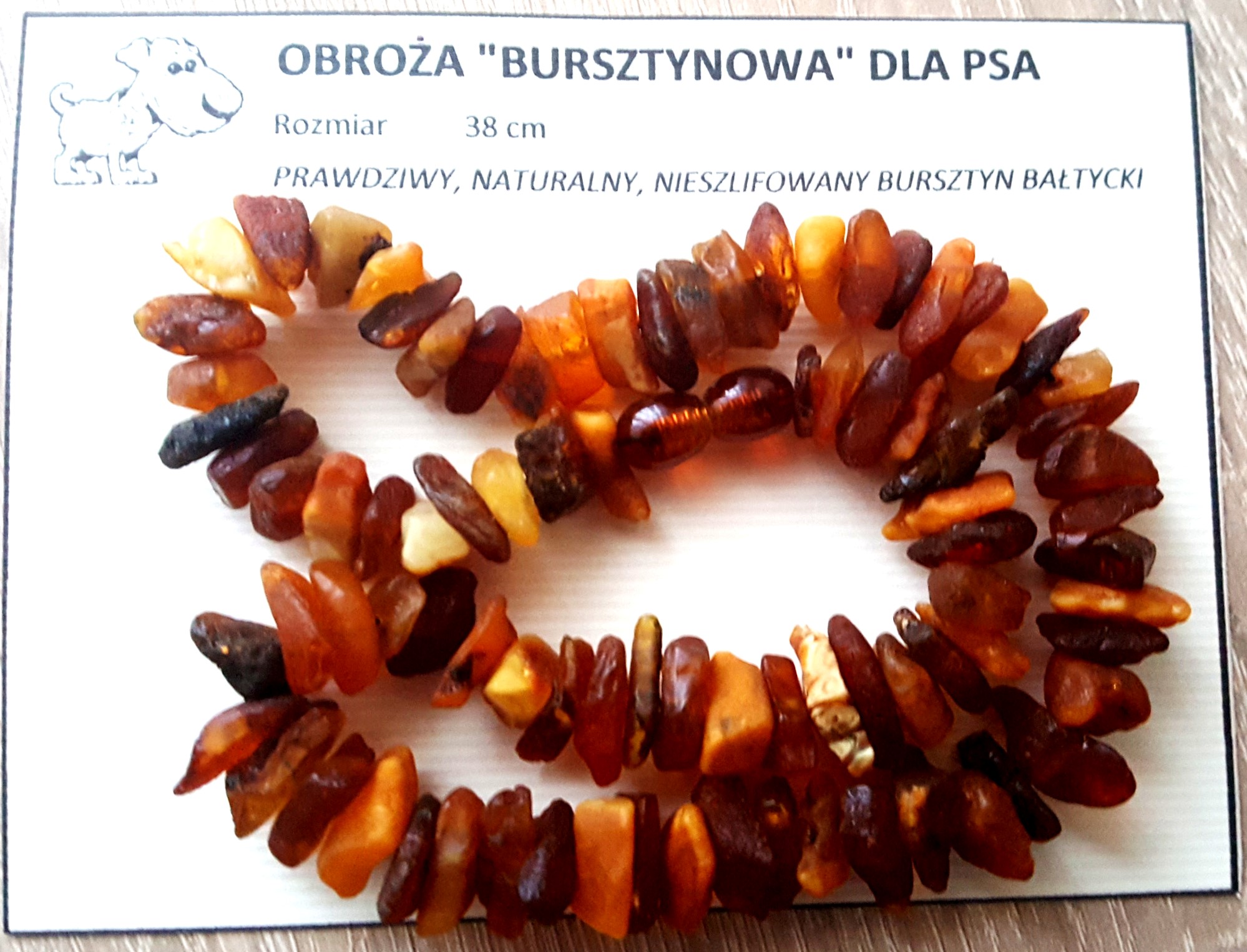 Oferowana OBROŻA – NASZYJNIK dla PSA jest zupełnie nowa i jest wytwarzana przez Nas, z zachowaniem odpowiedniej staranności wykonania i doboru odpowiedniej jakości bursztynu. Koraliki w obroży są zrobione z naturalnego bursztynu bałtyckiego.