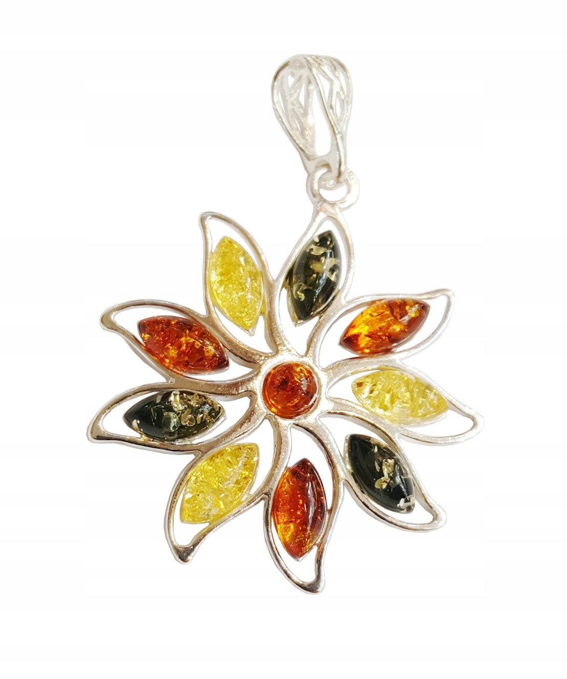 Prawdziwy BURSZTYN (wielokolorowy) SREBRO 925