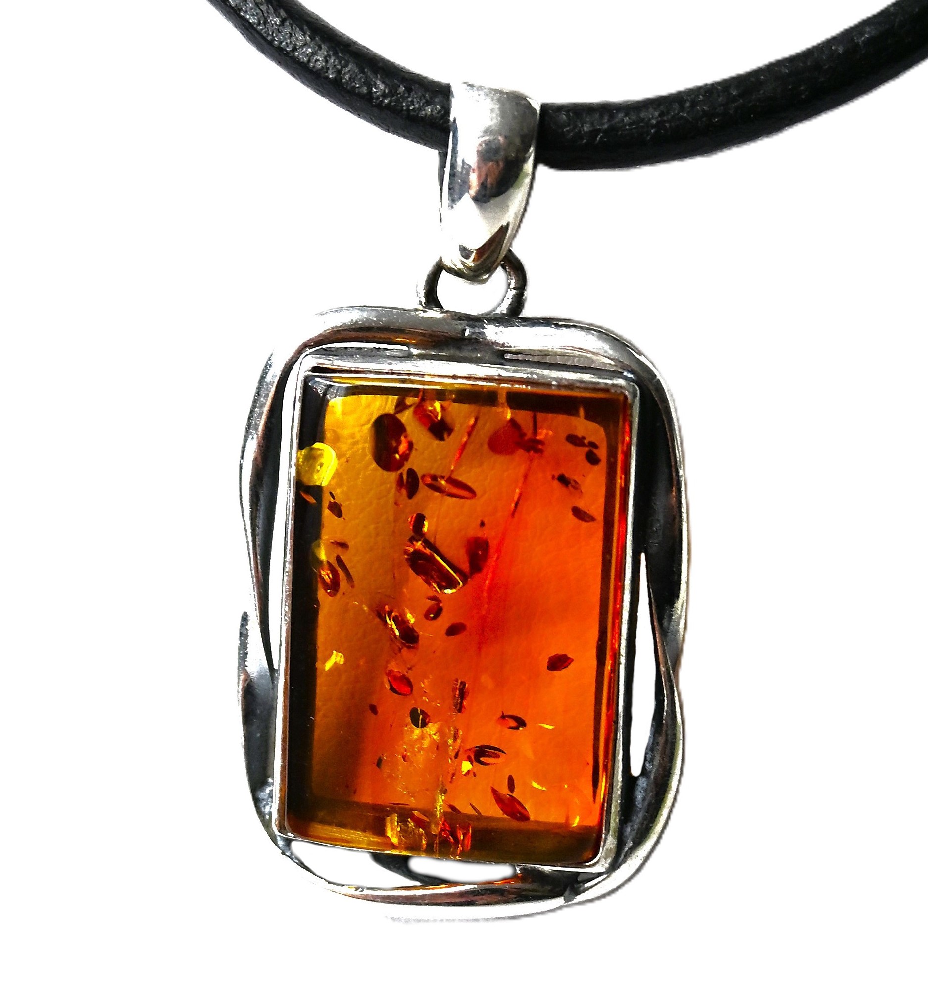 Oferujemy Państwu piękny WISIOR srebrny z brązowym BURSZTYNEM i rzemieniem w komplecie.