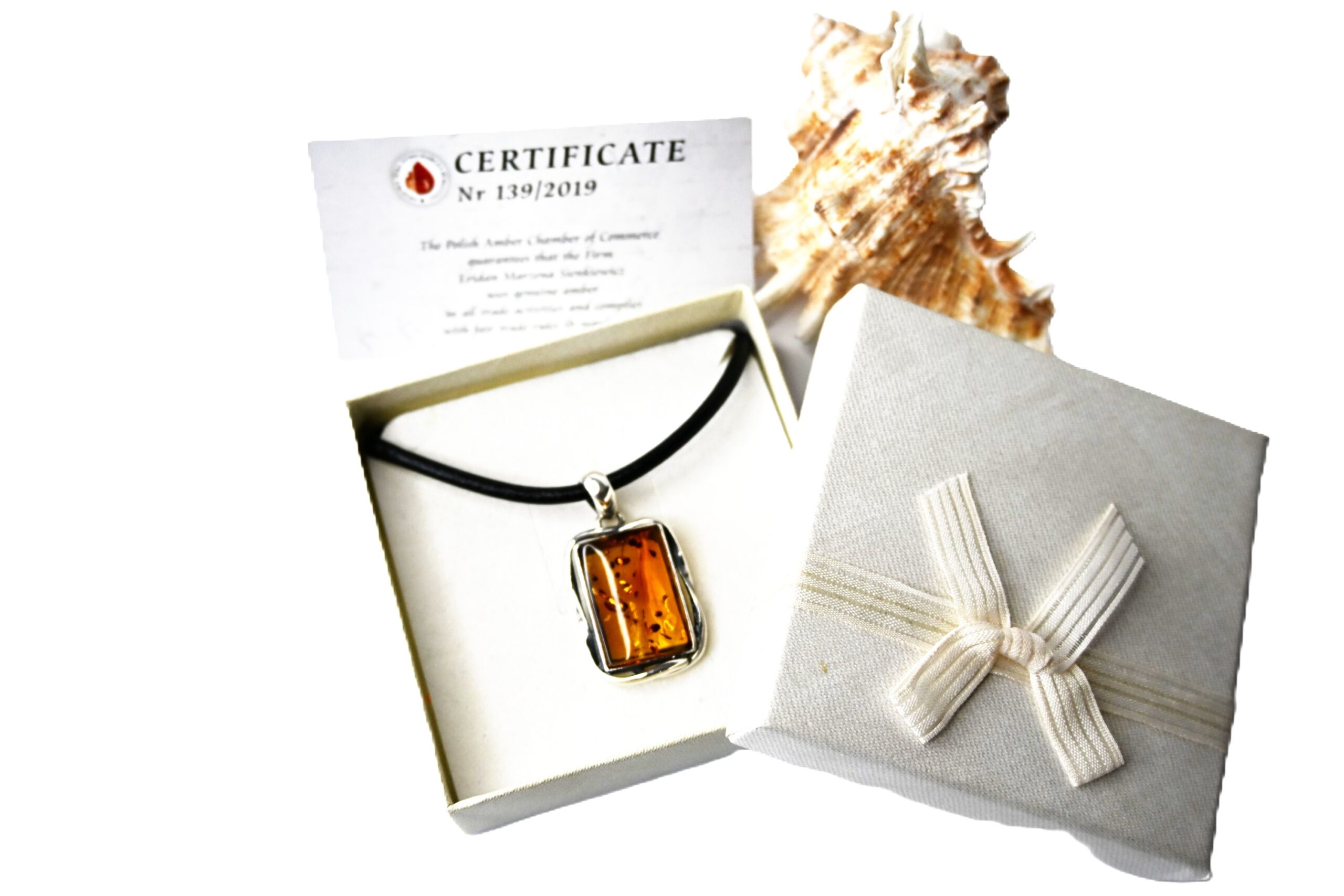 Kupując Nasz srebrny wisior z bursztynem i rzemieniem możecie być Państwo pewni, że zostanie on zapakowany w bardzo ładne pudełko jubilerskie. Zupełnie za darmo. Pudełka wybieramy losowo, zawsze kierując się tym, aby idealnie pasował do wybranego przez Państwa wisiora. Dodatkowo otrzymacie Państwo od Nas certyfikat potwierdzający autentyczność wyrobu.