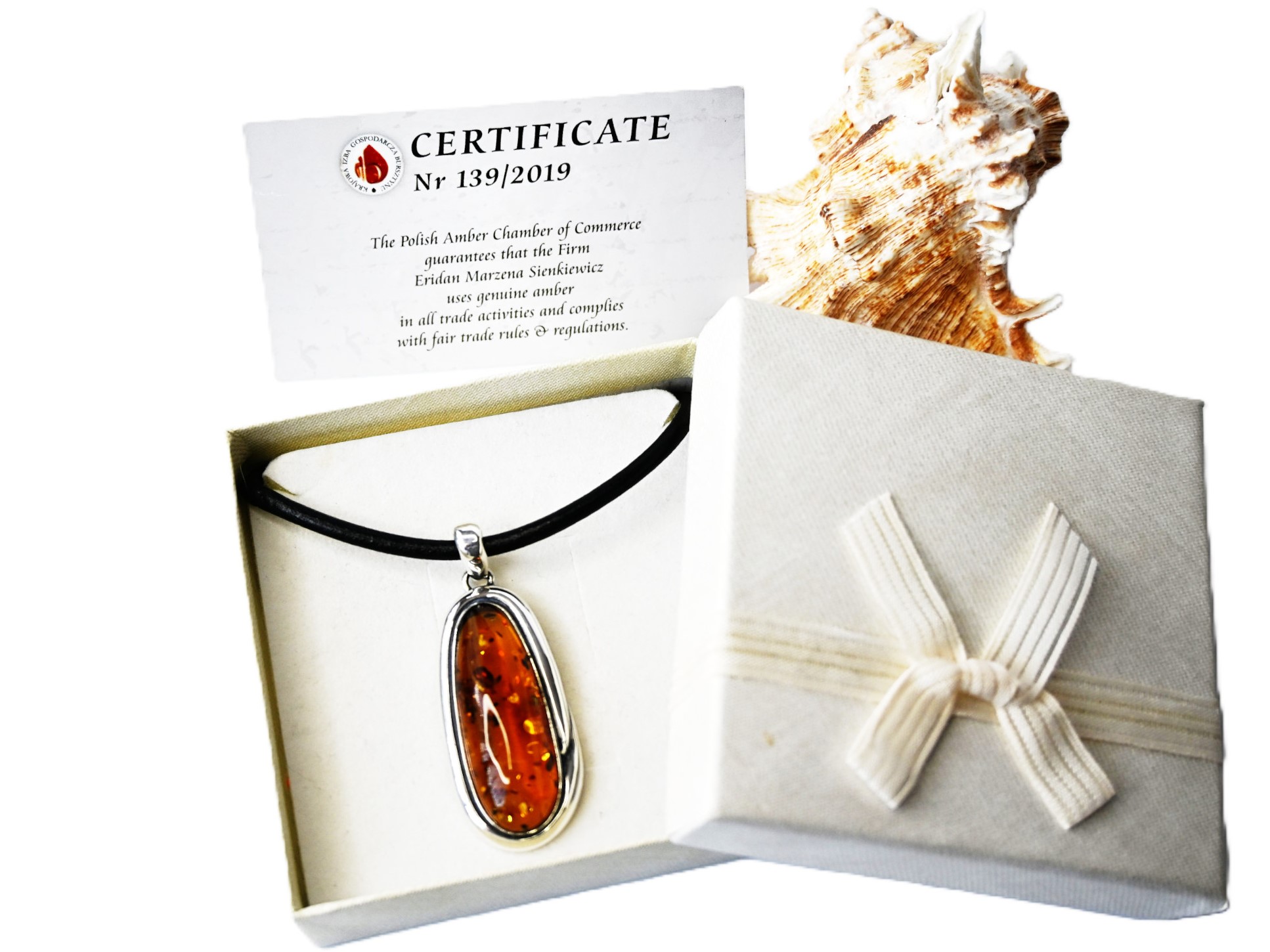 Kupując Nasz srebrny wisior z bursztynem i rzemieniem możecie być Państwo pewni, że zostanie on zapakowany w bardzo ładne pudełko jubilerskie. Zupełnie za darmo. Pudełka wybieramy losowo, zawsze kierując się tym, aby idealnie pasował do wybranego przez Państwa wisiora. Dodatkowo otrzymacie Państwo od Nas certyfikat potwierdzający autentyczność wyrobu.