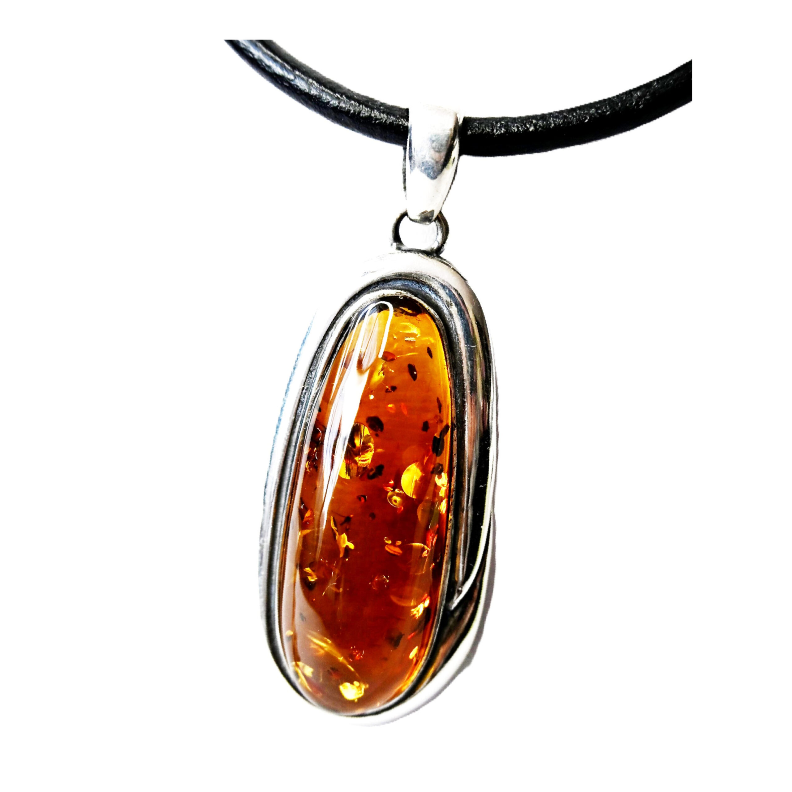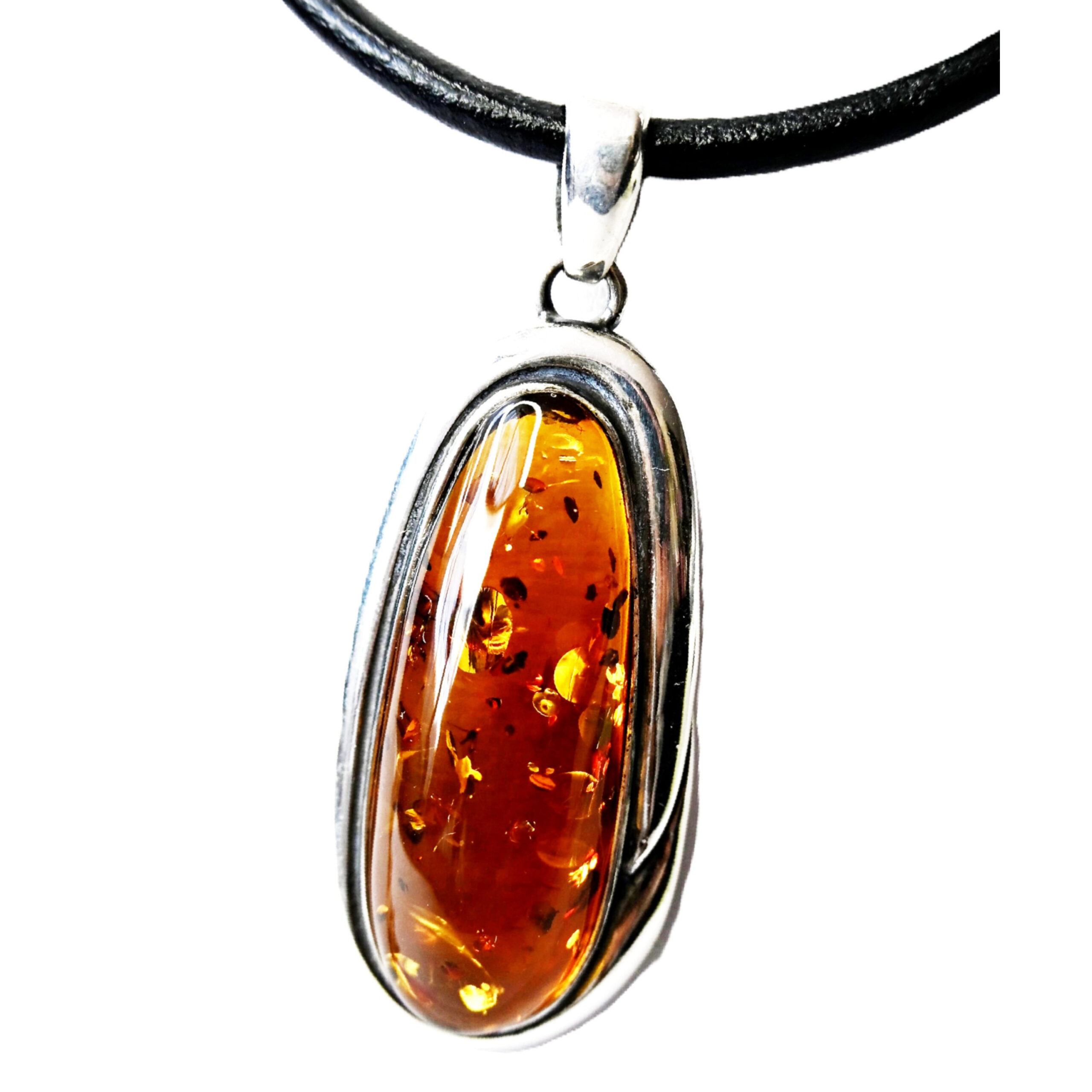 Oferujemy Państwu piękny i wyjątkowy WISIOR srebrny z brązowym BURSZTYNEM i rzemieniem w komplecie.