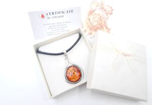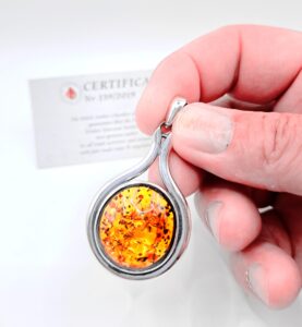 Kupując Nasz srebrny wisior z bursztynem i rzemieniem możecie być Państwo pewni, że zostanie on zapakowany w bardzo ładne pudełko jubilerskie. Zupełnie za darmo. Pudełka wybieramy losowo, zawsze kierując się tym, aby idealnie pasował do wybranego przez Państwa wisiora. Dodatkowo otrzymacie Państwo od Nas certyfikat potwierdzający autentyczność wyrobu.