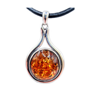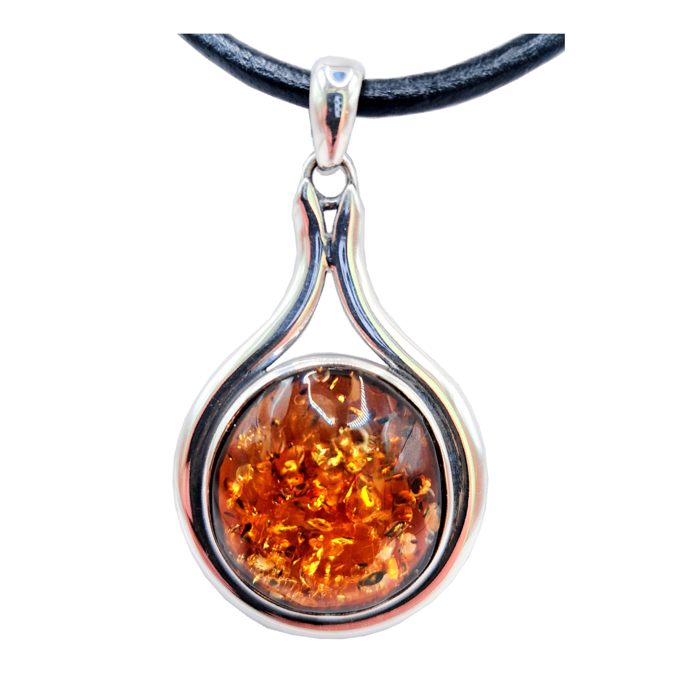 Oferujemy Państwu piękny WISIOR srebrny z brązowym BURSZTYNEM i rzemieniem w komplecie.
