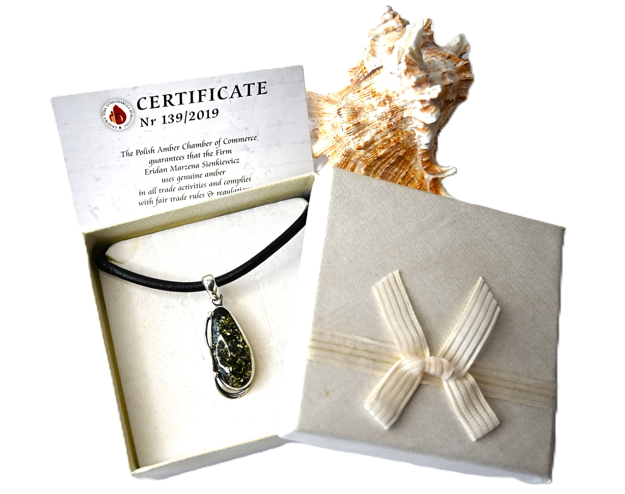 Kupując Nasz srebrny wisior z bursztynem i rzemieniem możecie być Państwo pewni, że zostanie on zapakowany w bardzo ładne pudełko jubilerskie. Zupełnie za darmo. Pudełka wybieramy losowo, zawsze kierując się tym, aby idealnie pasował do wybranego przez Państwa wisiora. Dodatkowo otrzymacie Państwo od Nas certyfikat potwierdzający autentyczność wyrobu.