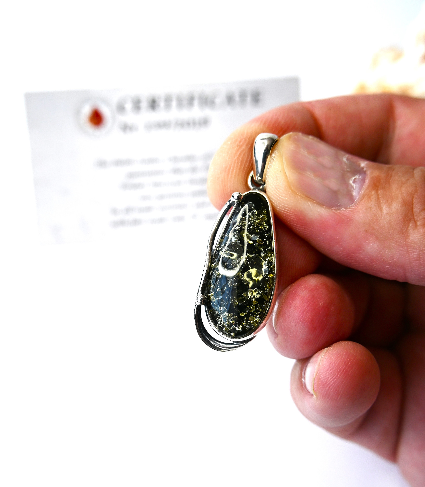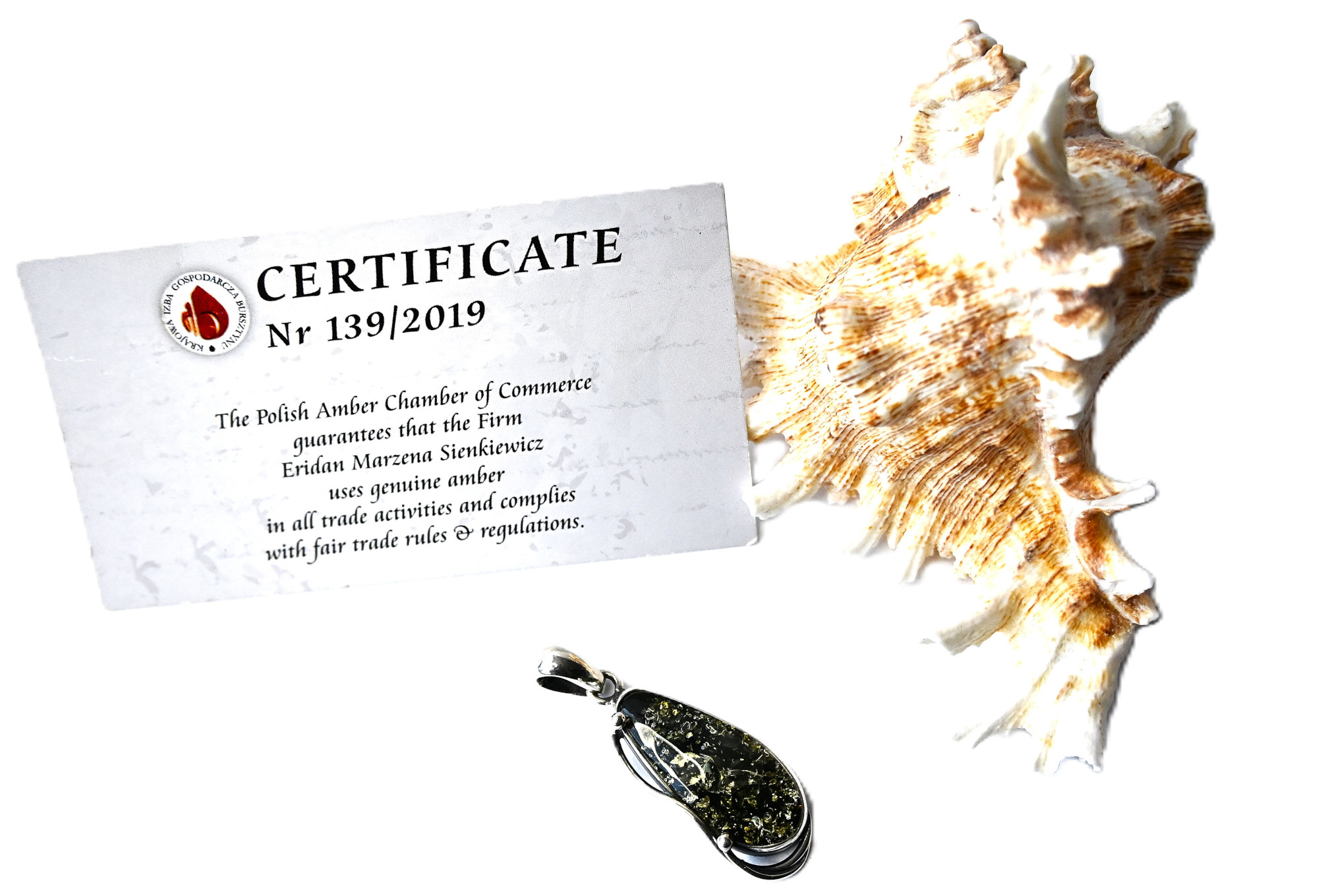 Prawdziwy BURSZTYN (kolor zielony). Autentyczne SREBRO 925