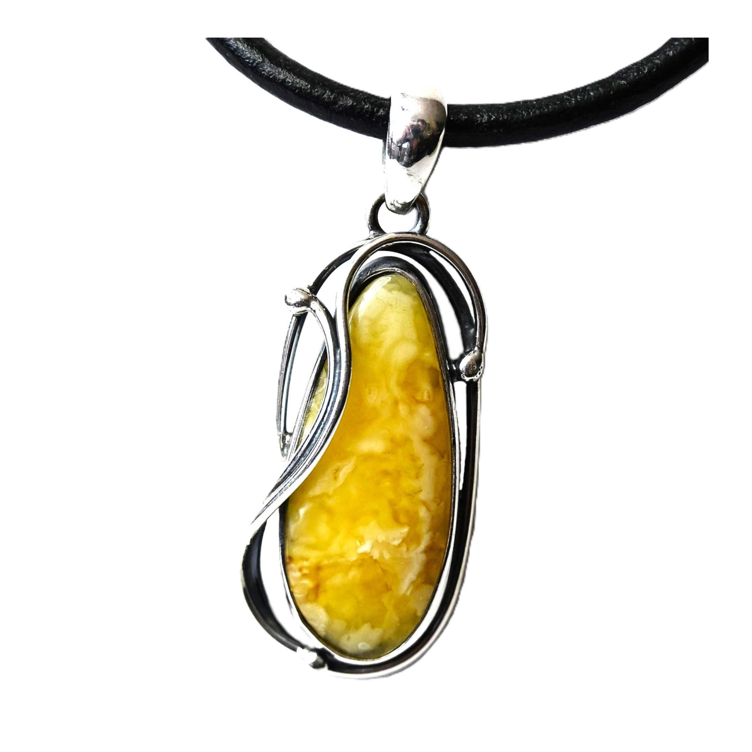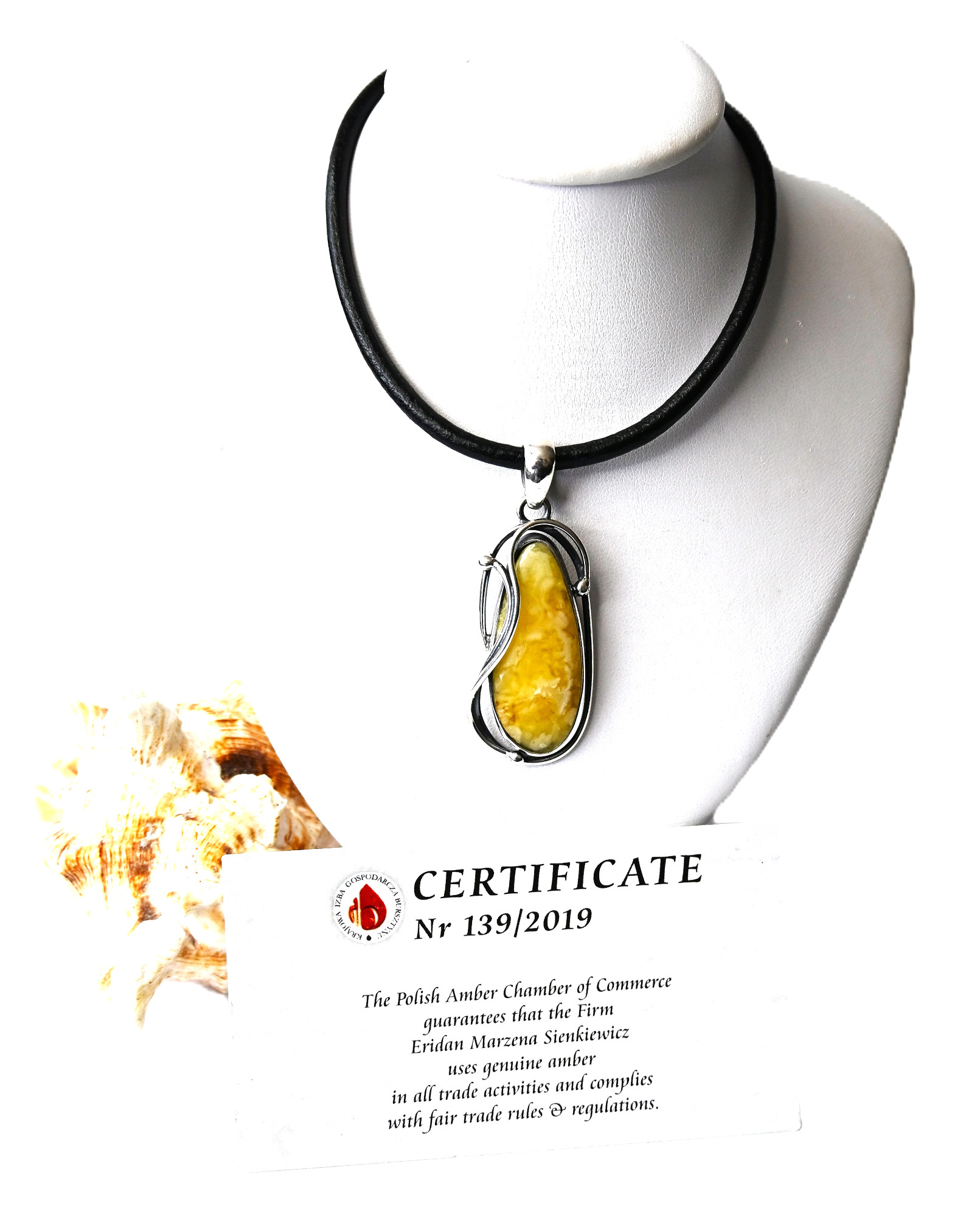 Oferujemy Państwu piękny WISIOR srebrny z żółtym BURSZTYNEM i rzemieniem w komplecie.