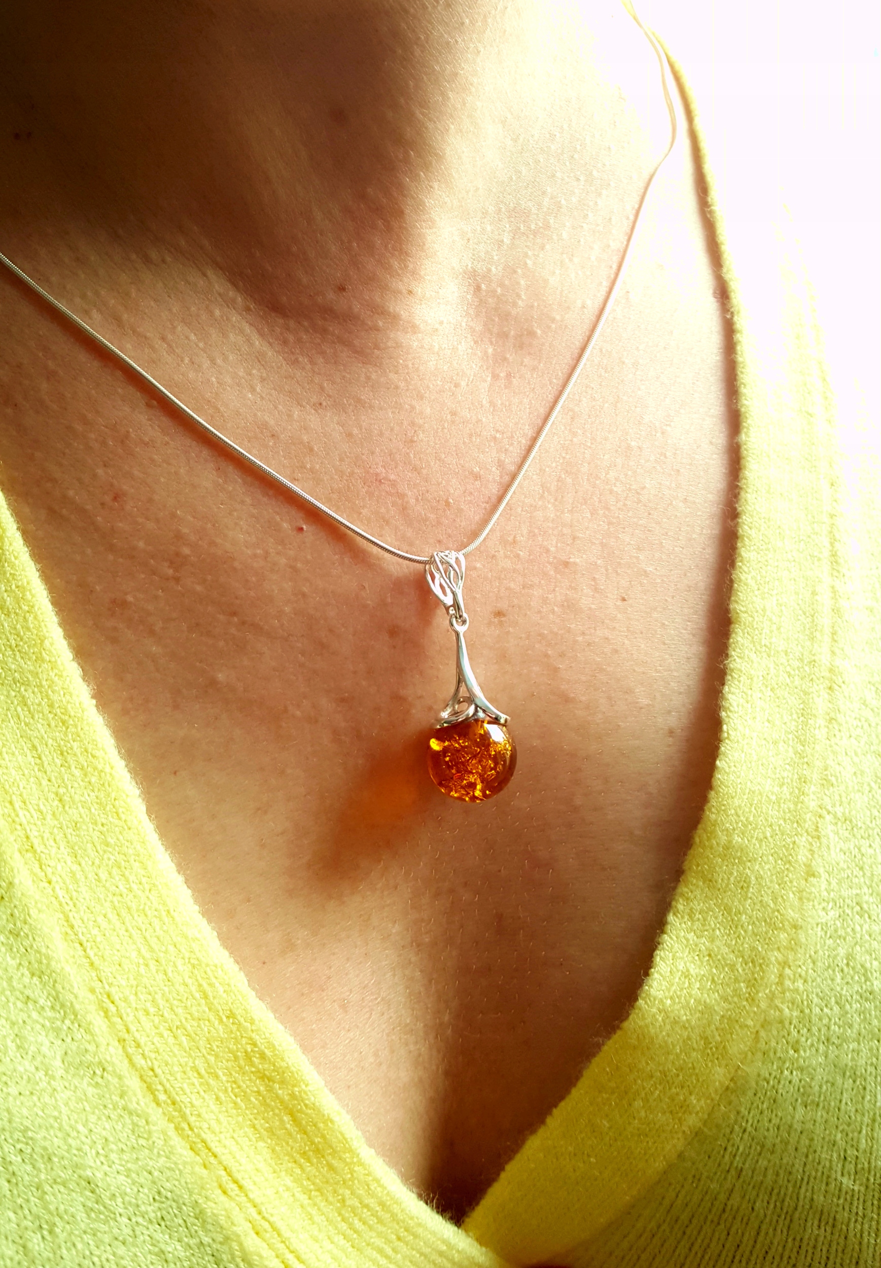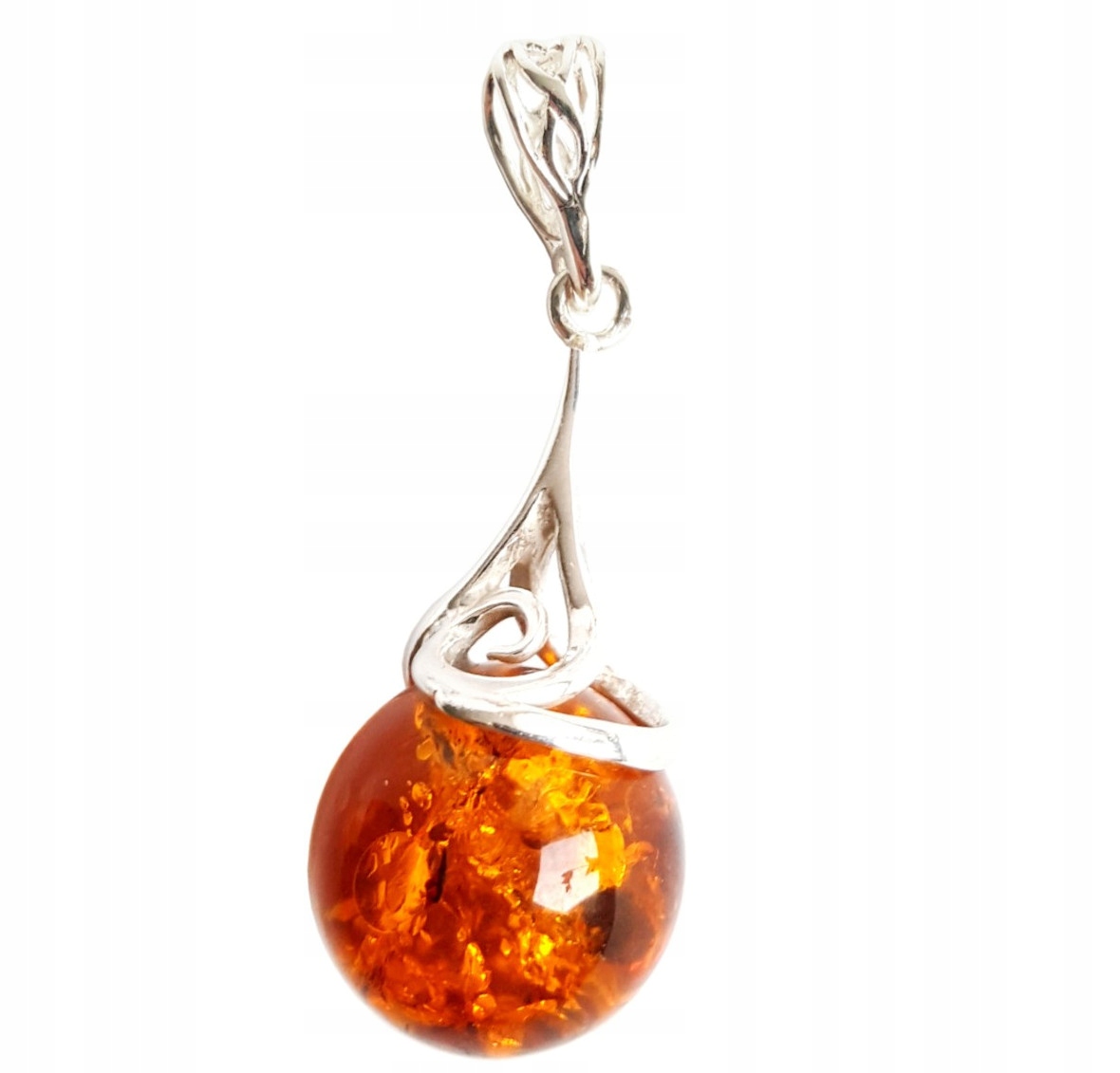 Oferujemy Państwu piękny WISIOREK srebrny z prawdziwym BURSZTYNEM w kształcie KULKI