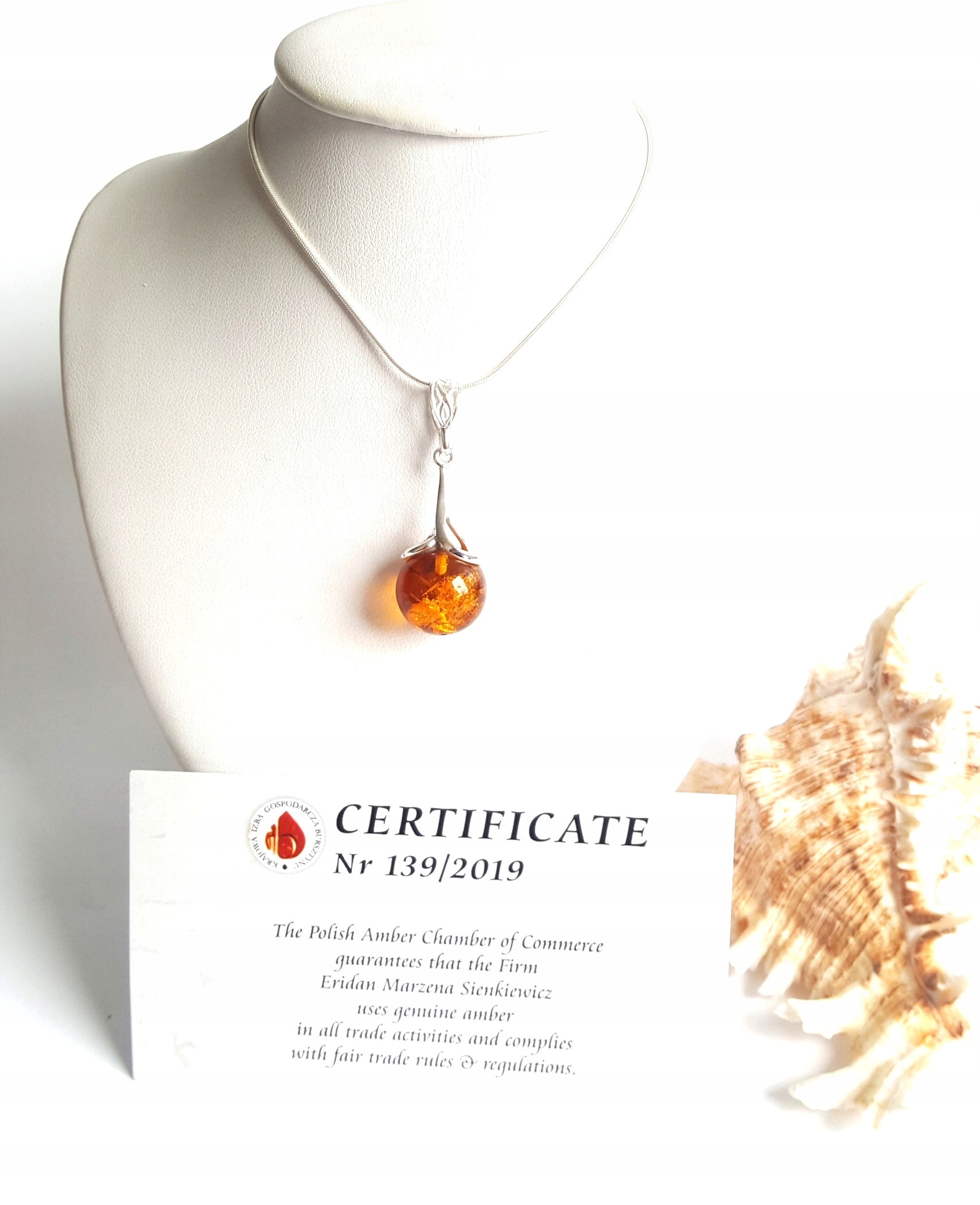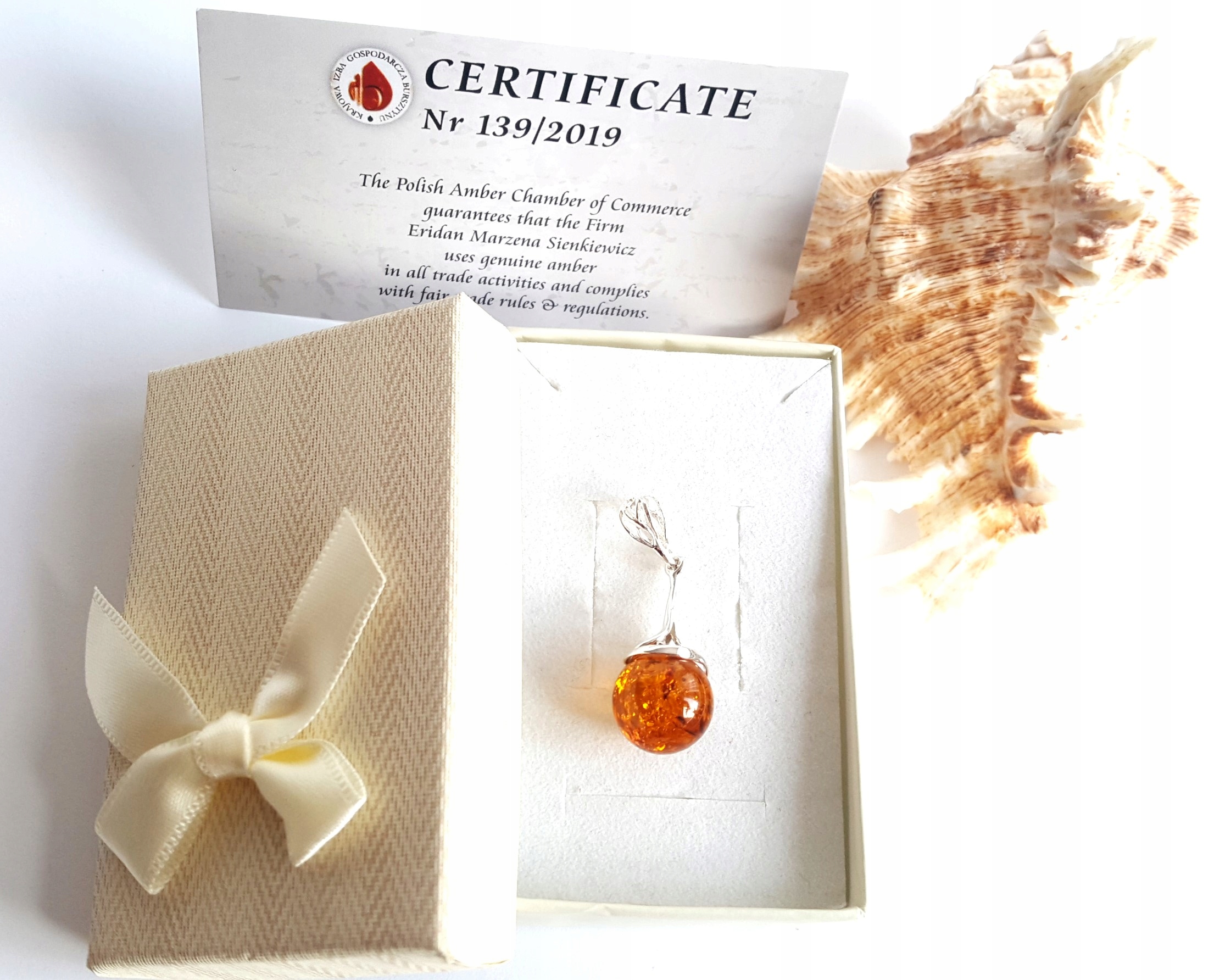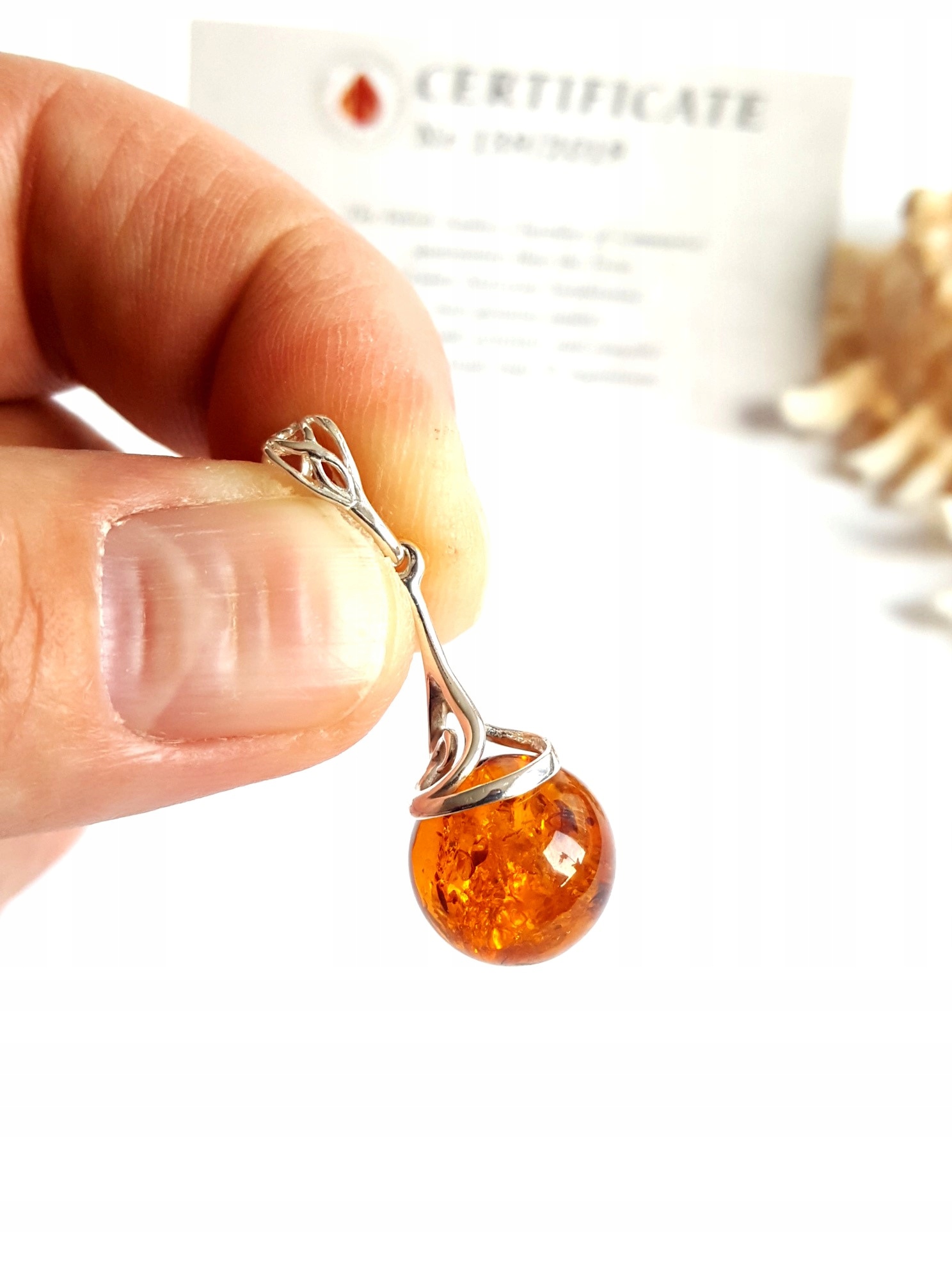 WISIOREK BURSZTYN-SREBRO zawieszka *kulka* +CERTYF