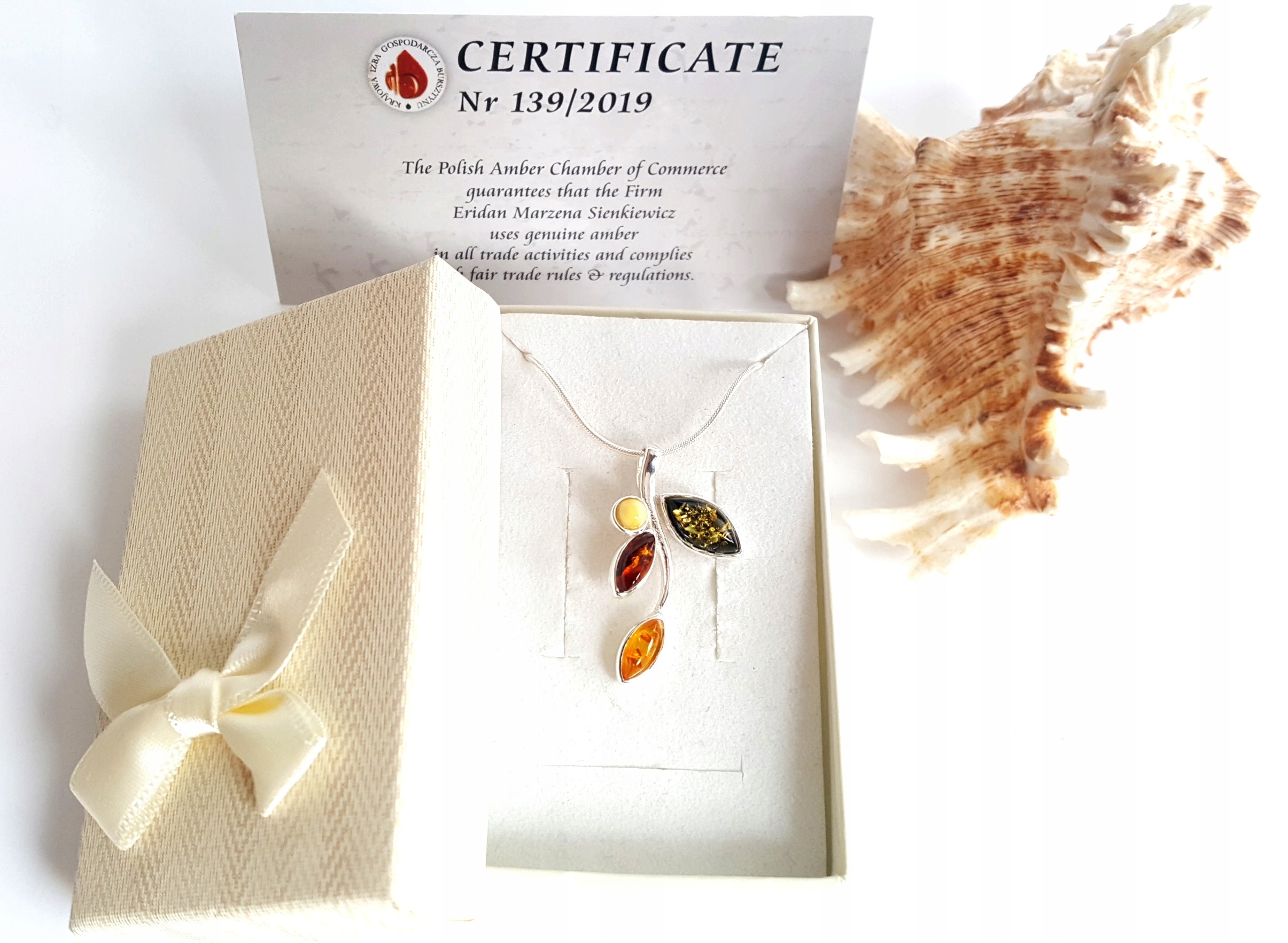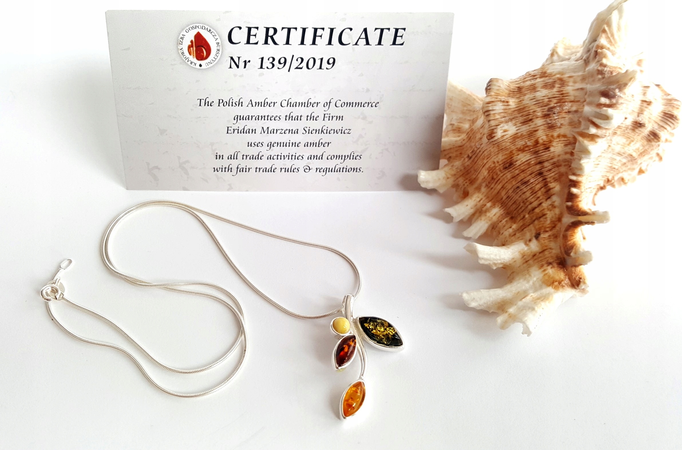 *** Naturalny i prawdziwy BURSZTYN *** SREBRO 925 *** CERTYFIKAT AUTENTYCZNOŚCI ***