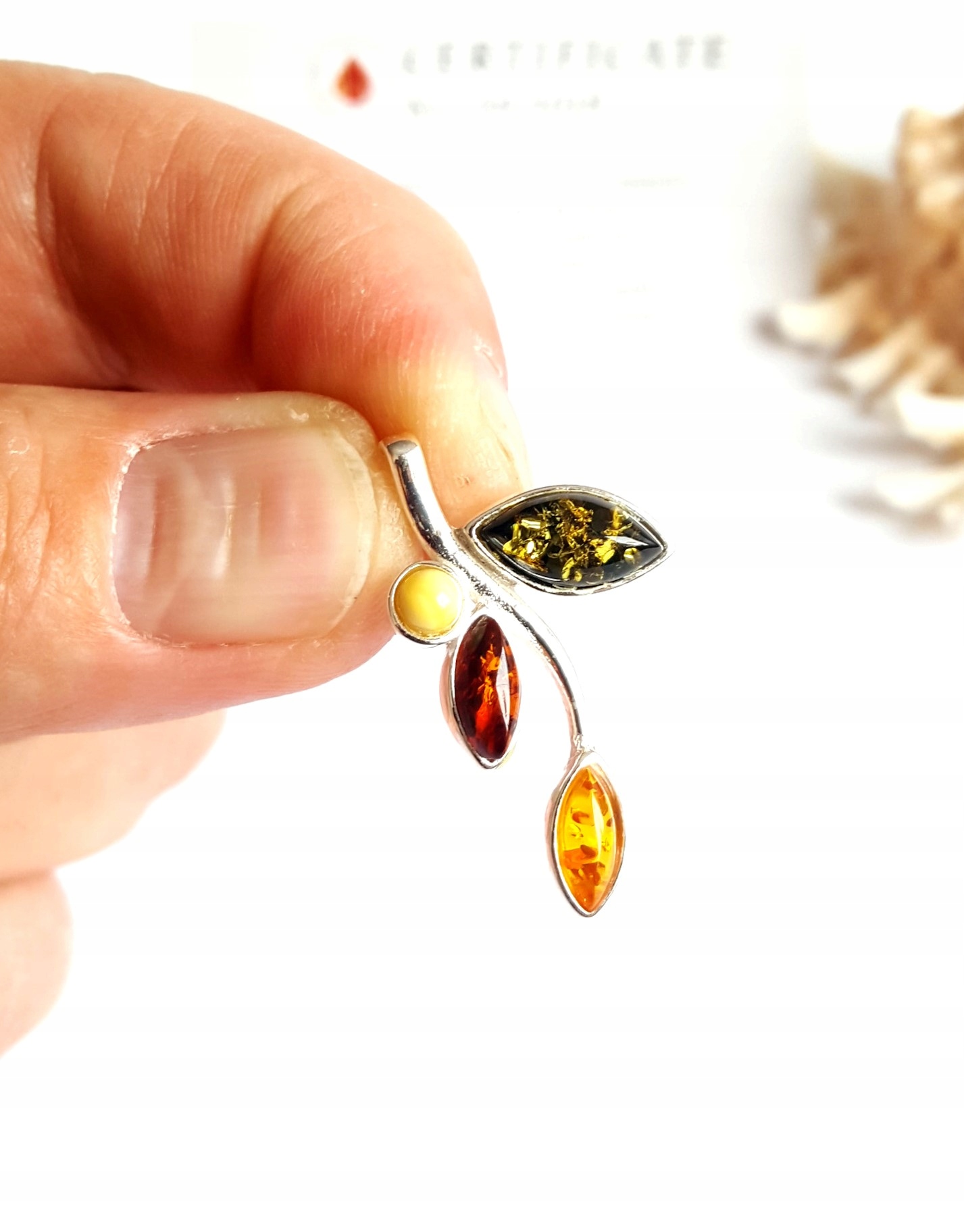 *** Delikatny WISIOREK SREBRNY z kolorowym BURSZTYNEM ***