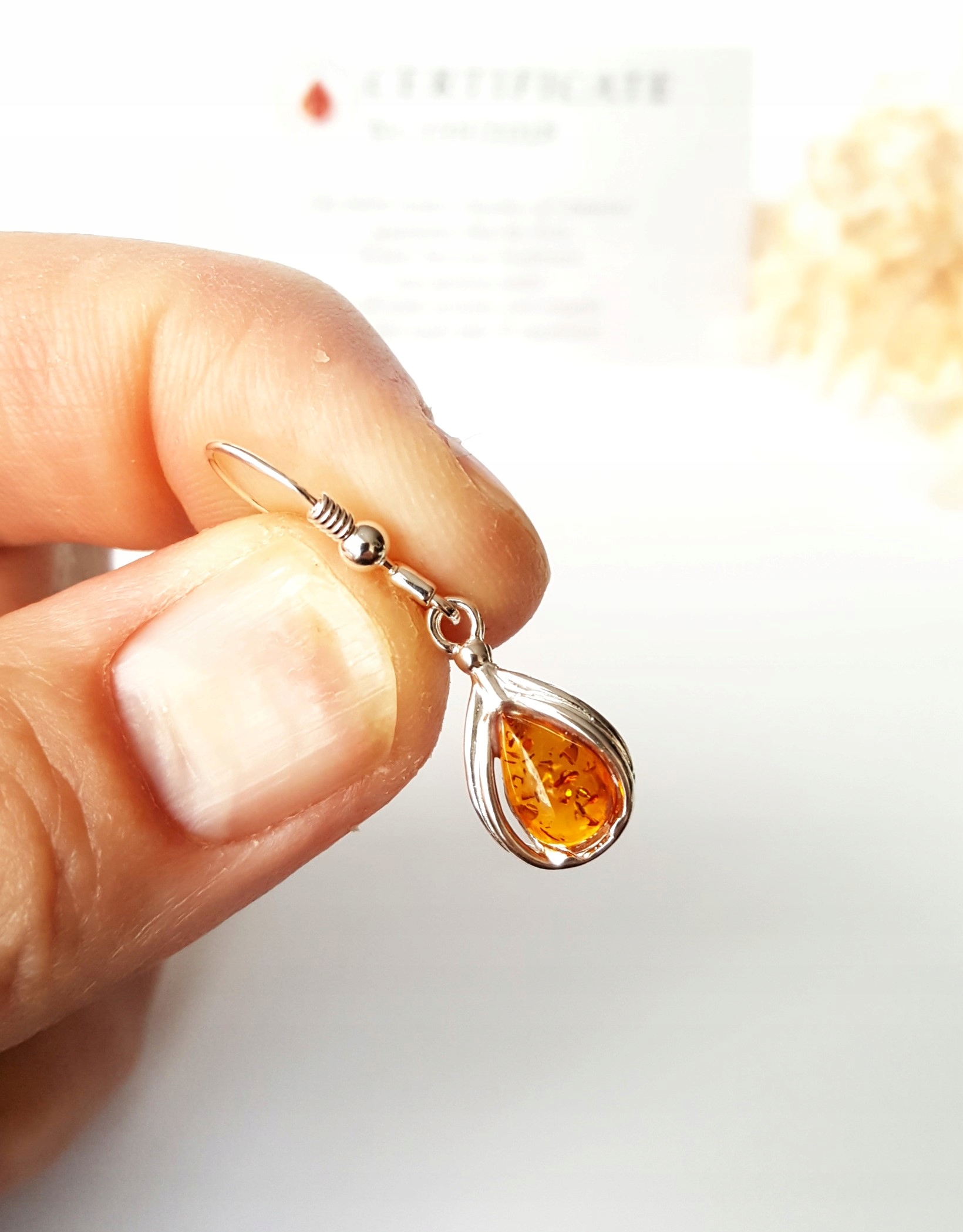 Prawdziwy BURSZTYN *** CERTYFIKAT *** autentyczne NAJWYŻSZEJ PRÓBY SREBRO 925 ***