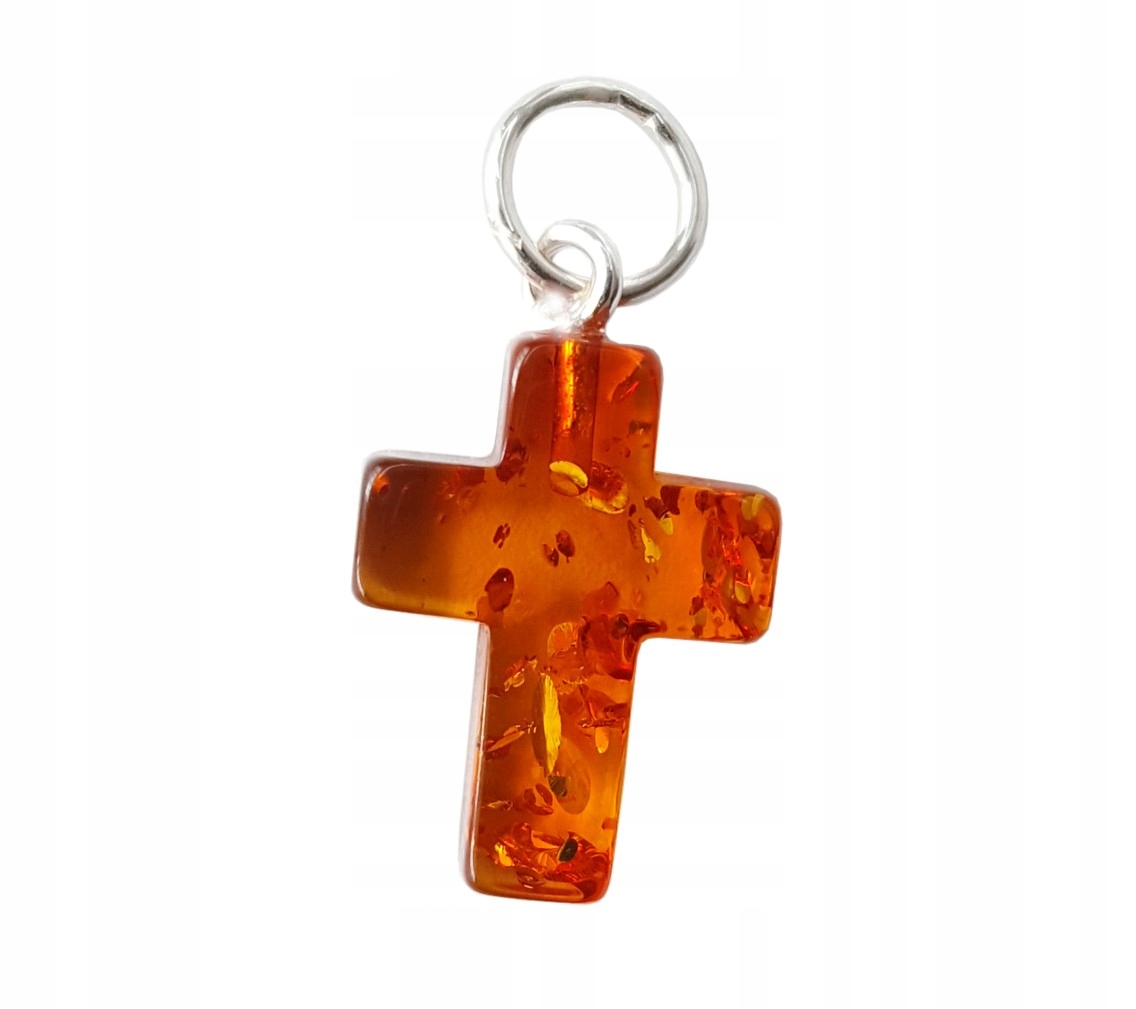 *** mały K R Z Y Ż Y K BURSZTYNOWY ze srebrną zawieszką !!! ***
