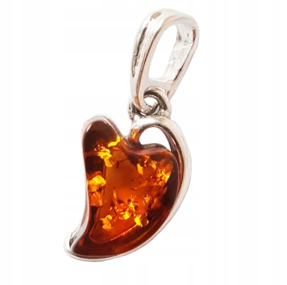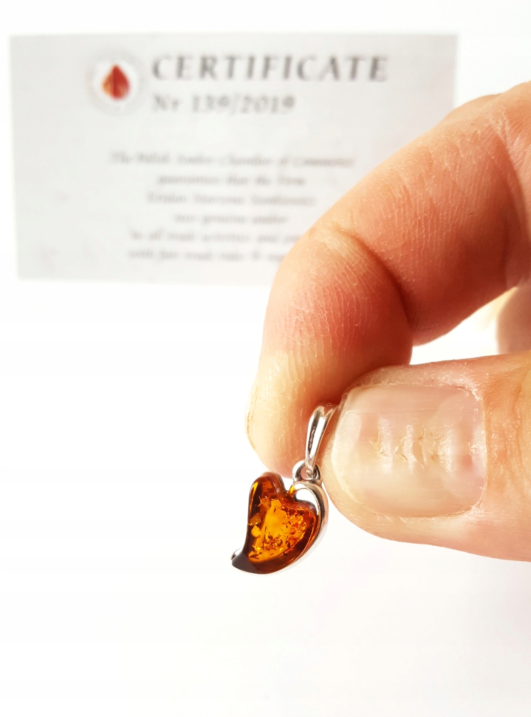 Wisiorek małe SERCE zawieszka BURSZTYN srebro+CERT