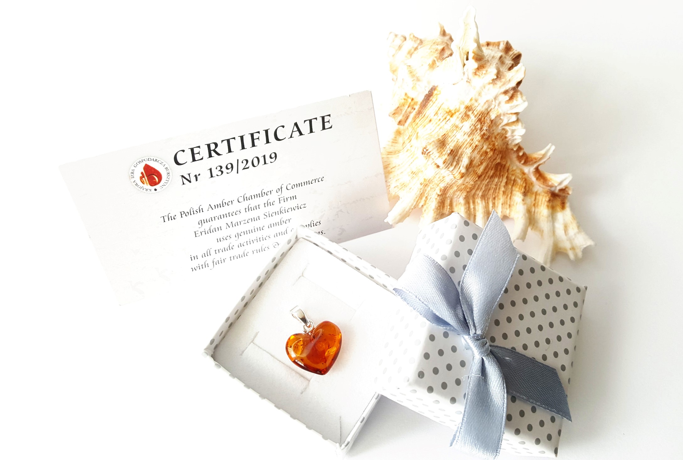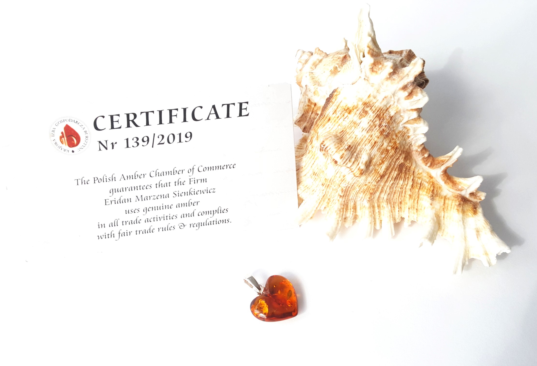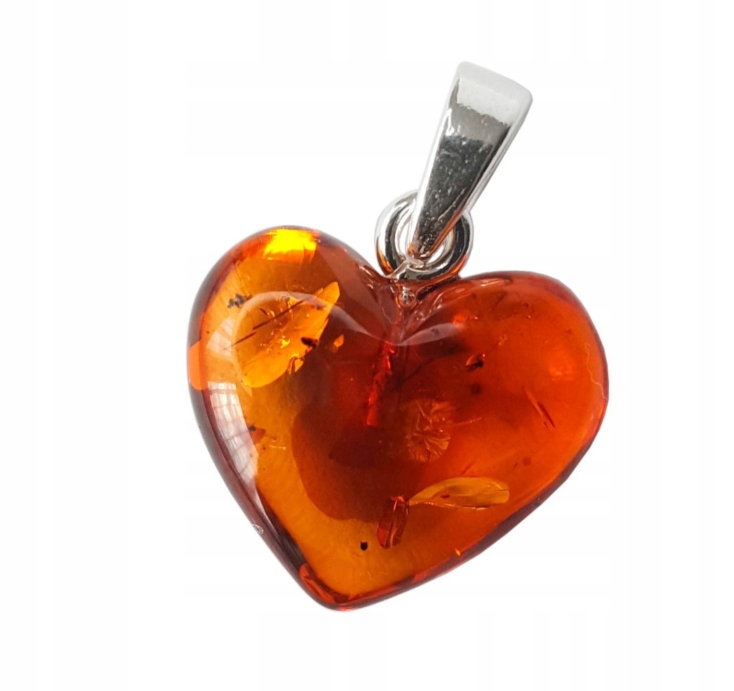 Oferowany wisiorek bursztynowy ze srebrem jest zupełnie nowy i pochodzi z Naszej pracowni. Serce jest z naturalnego bursztynu.
