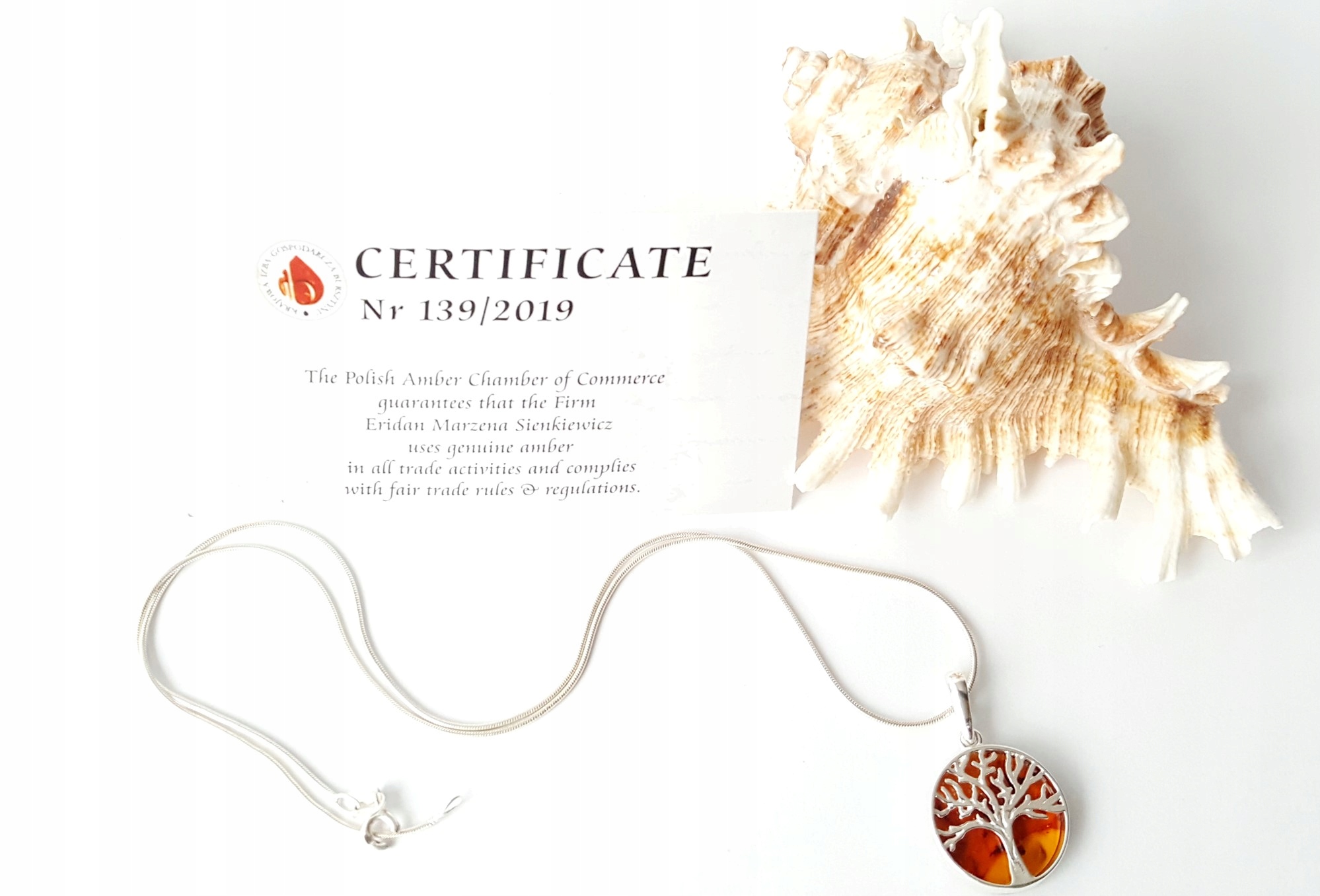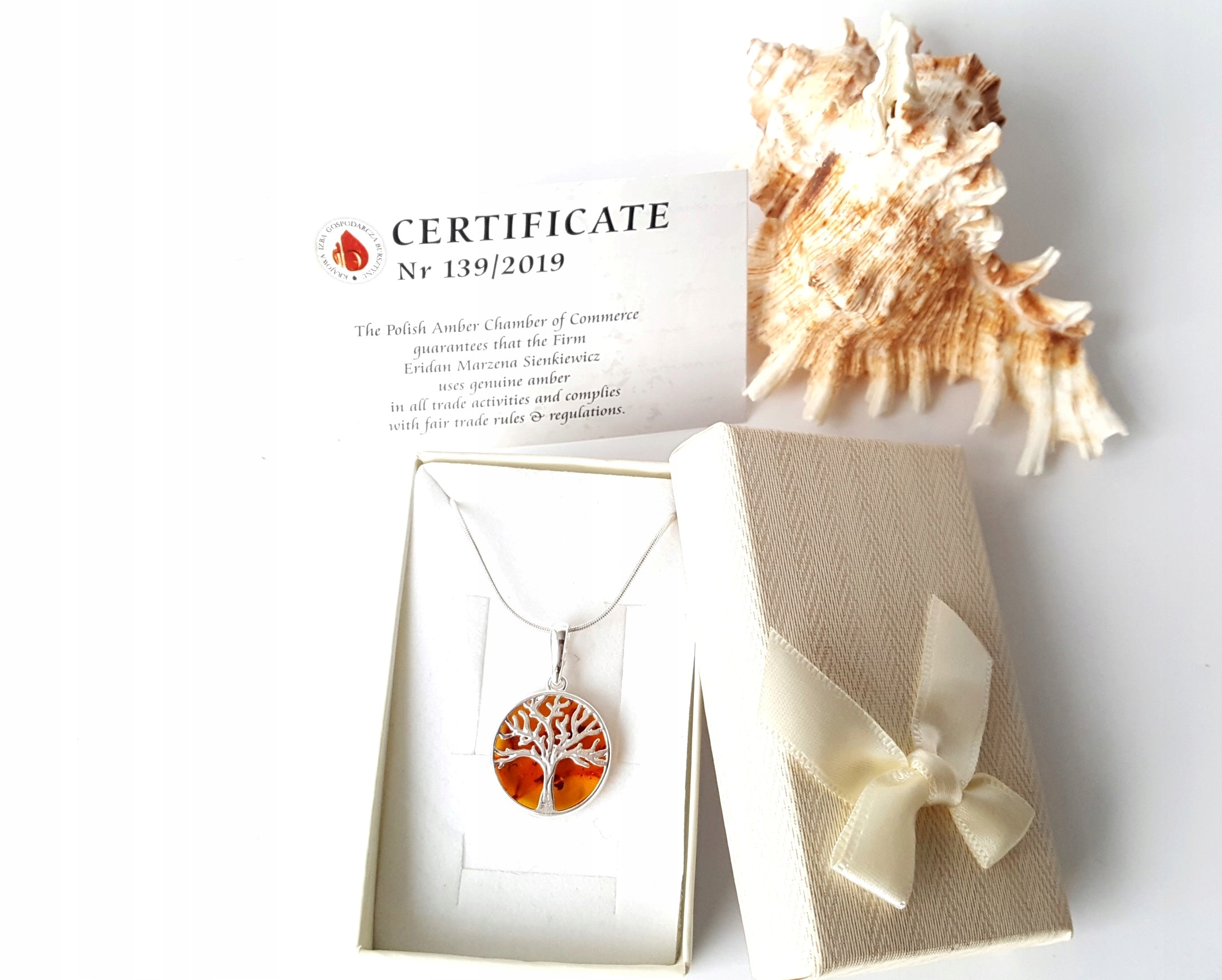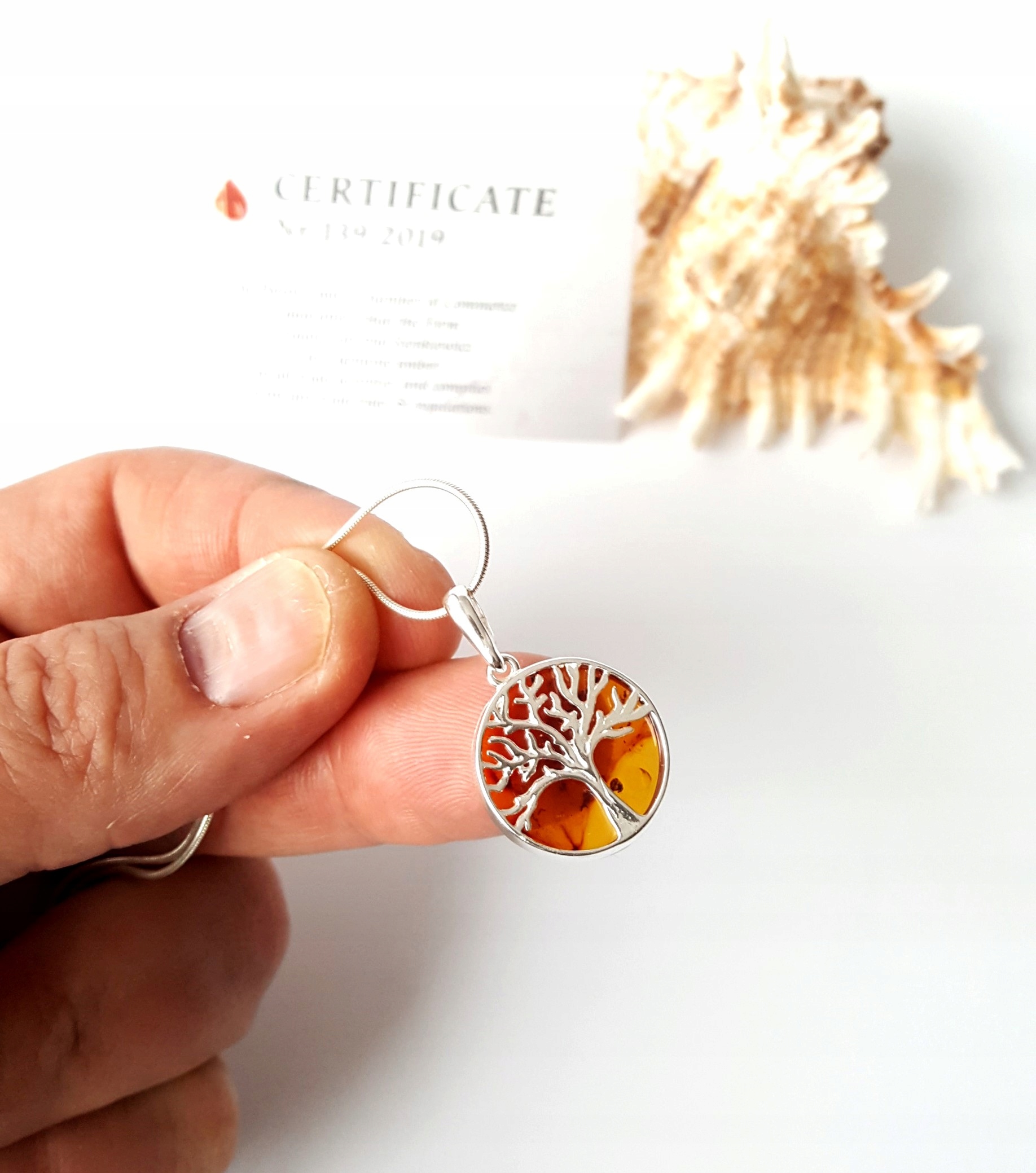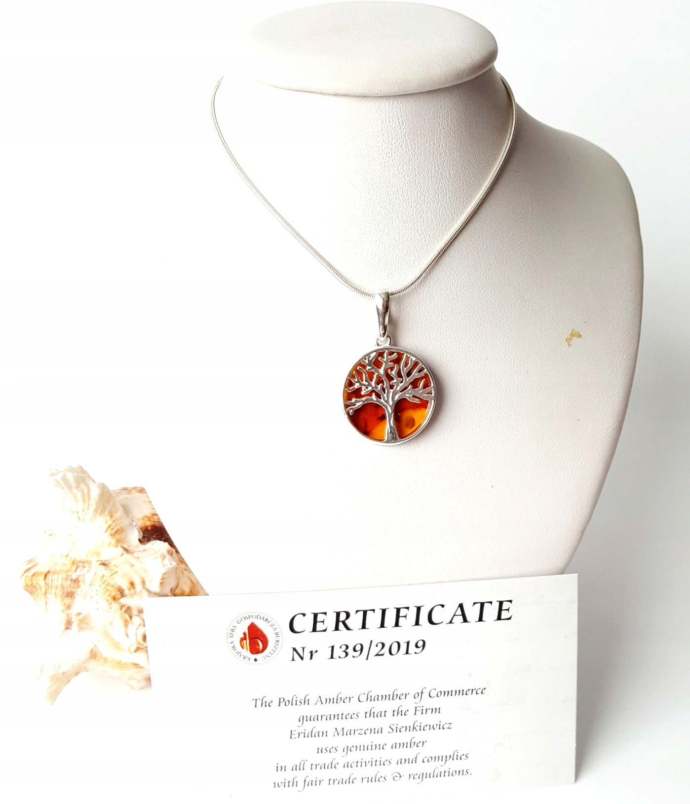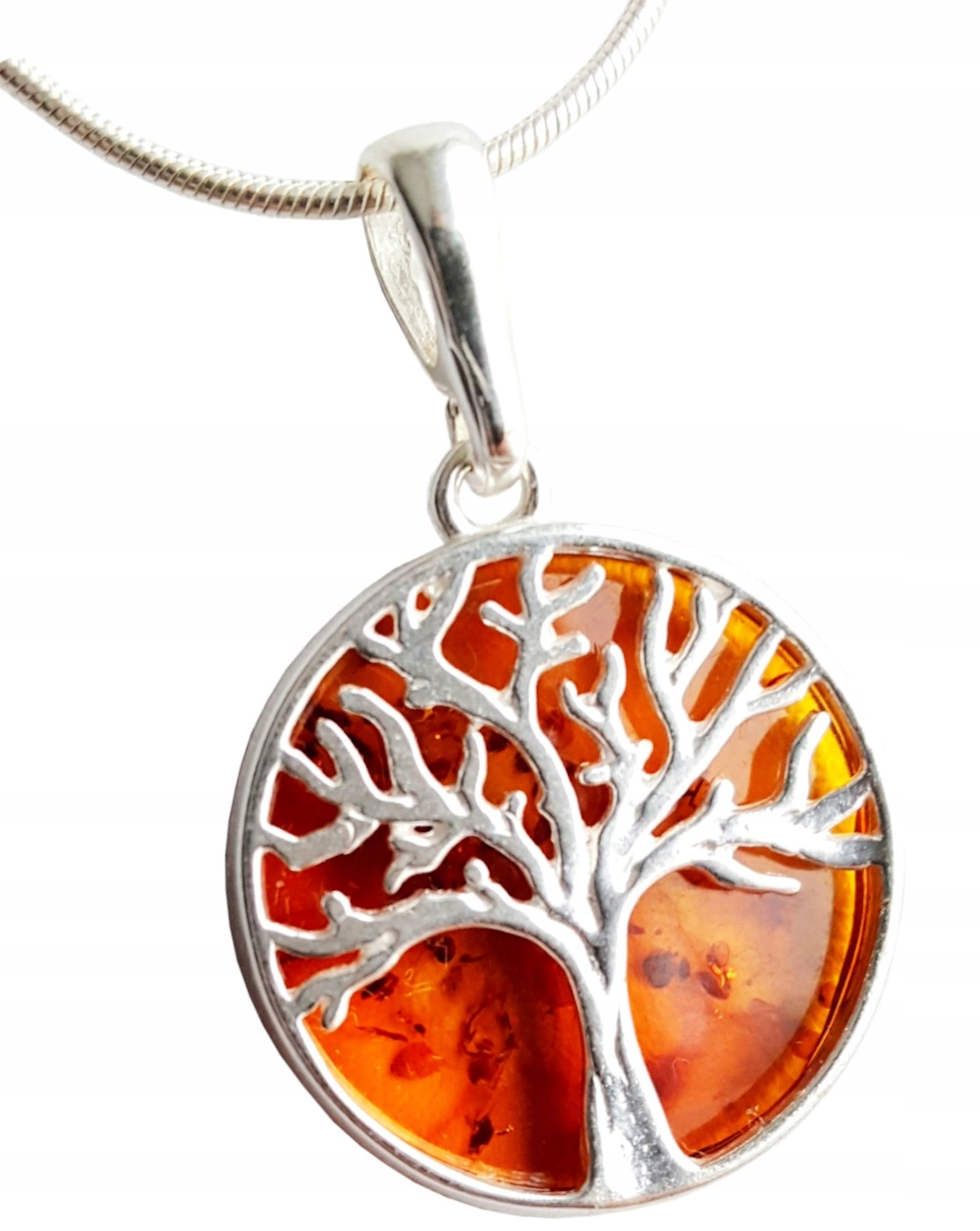 Wisiorek – DRZEWKO ŻYCIA Z BURSZTYNEM – drzewko szczęścia + ŁAŃCUSZEK srebrny