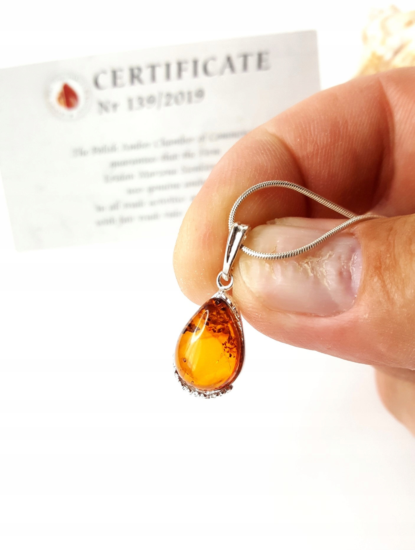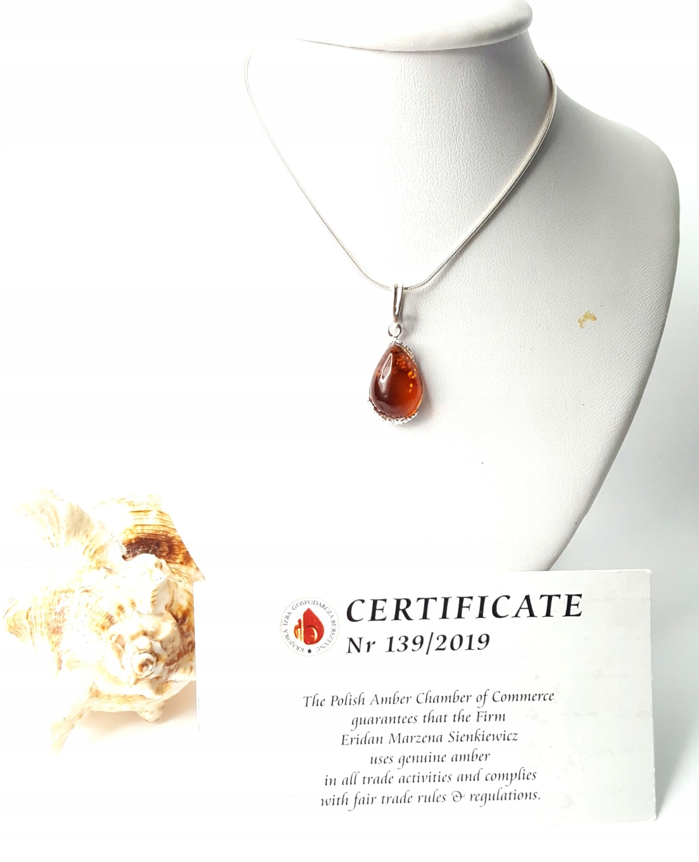 *** Naturalny i prawdziwy BURSZTYN *** SREBRO 925 *** CERTYFIKAT AUTENTYCZNOŚCI ***