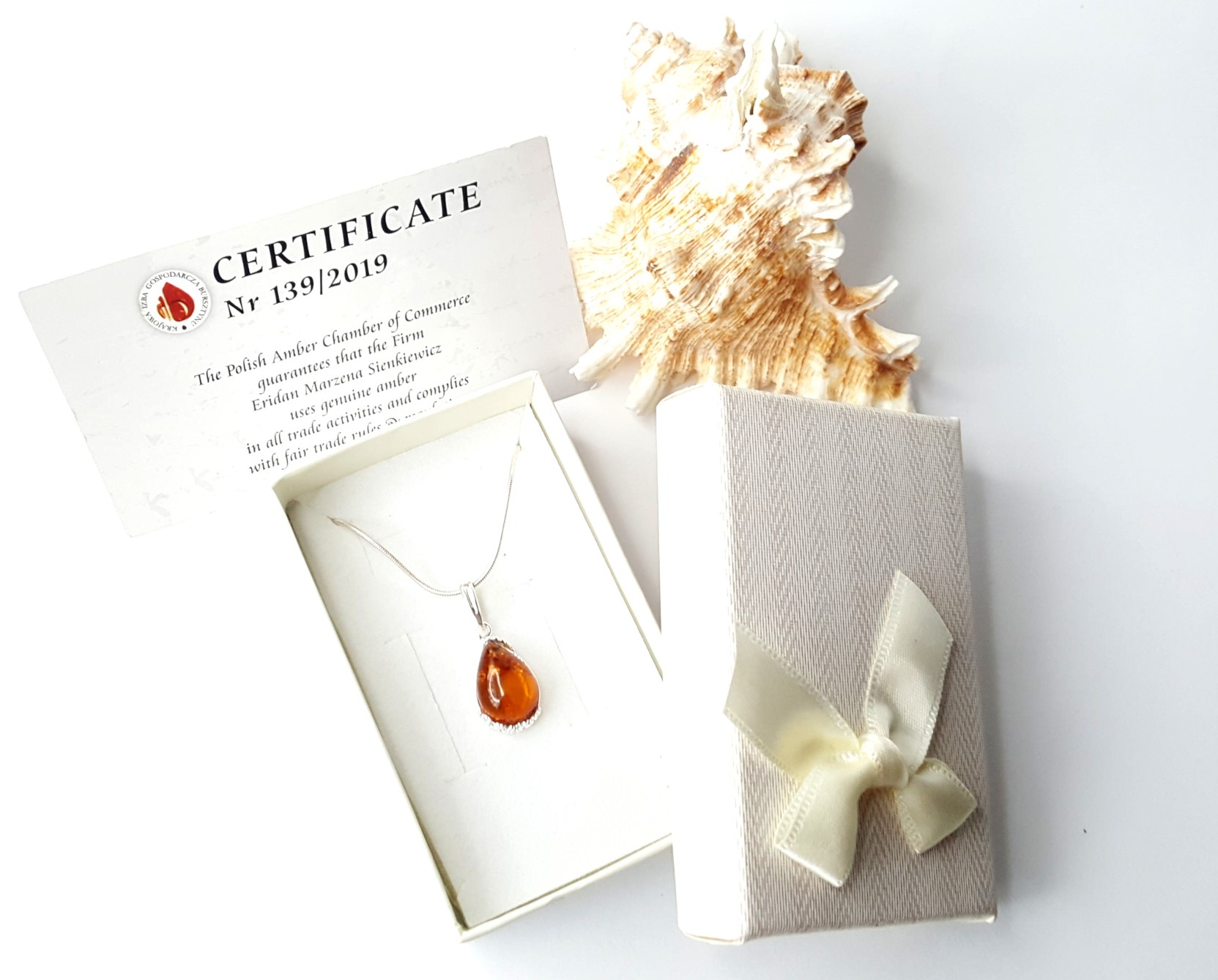 Kupując Nasz srebrny WISIOREK z bursztynem i ŁAŃCUSZKIEM możecie być Państwo pewni, że zostanie on zapakowany w bardzo ładne pudełko jubilerskie. Zupełnie za darmo. Pudełka wybieramy losowo, zawsze kierując się tym, aby idealnie pasował do wybranego przez Państwa wisiorka.