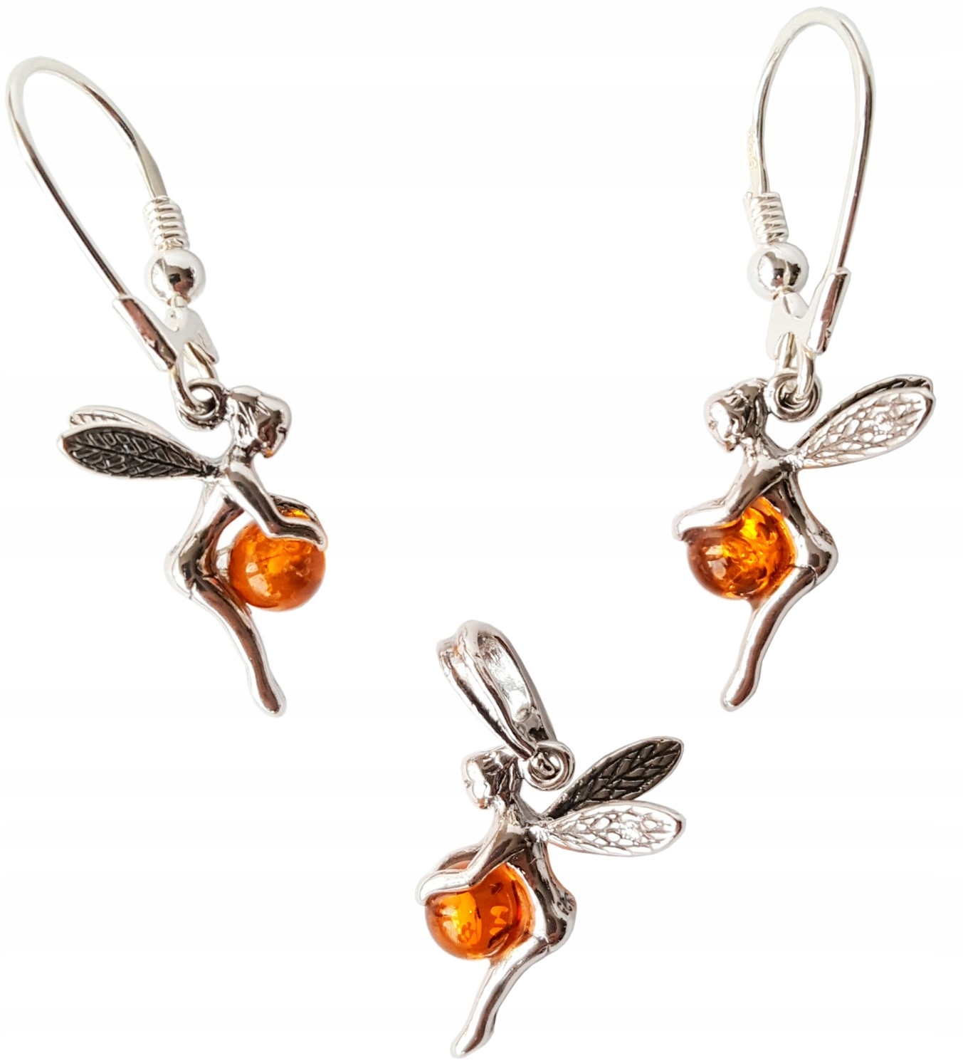 WISIOREK SREBRNY z BURSZTYNEM *ELF-wróżka *PREZENT