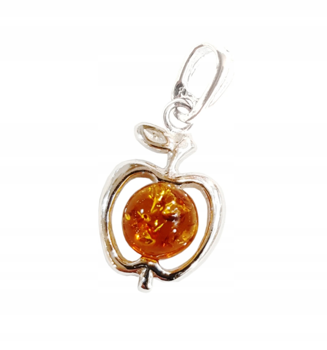 Delikatny WISIOREK SREBRNY Z BURSZTYNEM – JABŁUSZKO