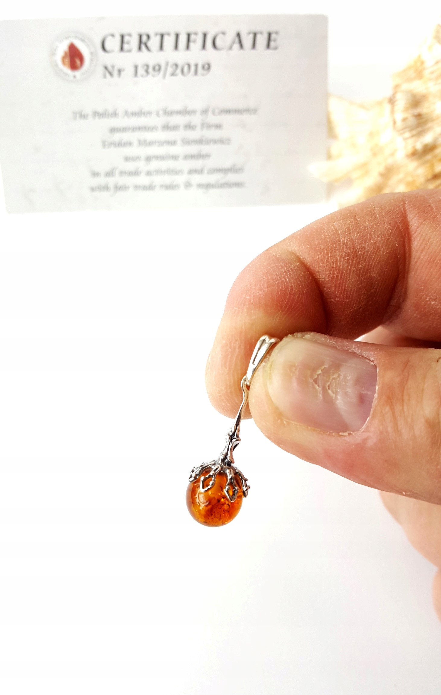 *** Naturalny i prawdziwy BURSZTYN *** SREBRO 925 *** CERTYFIKAT AUTENTYCZNOŚCI ***