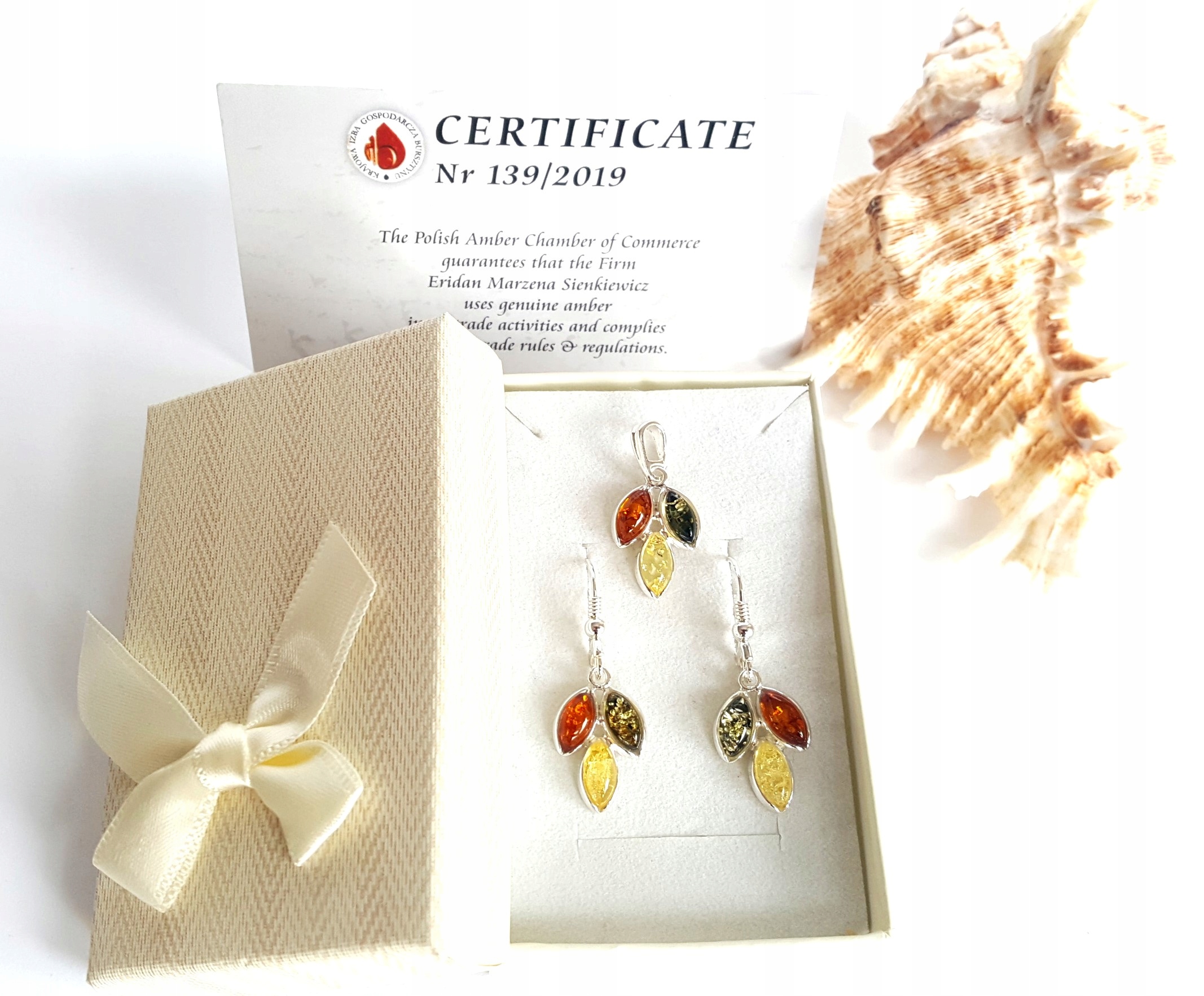 Prawdziwy BURSZTYN (multikolor) Autentyczne SREBRO 925