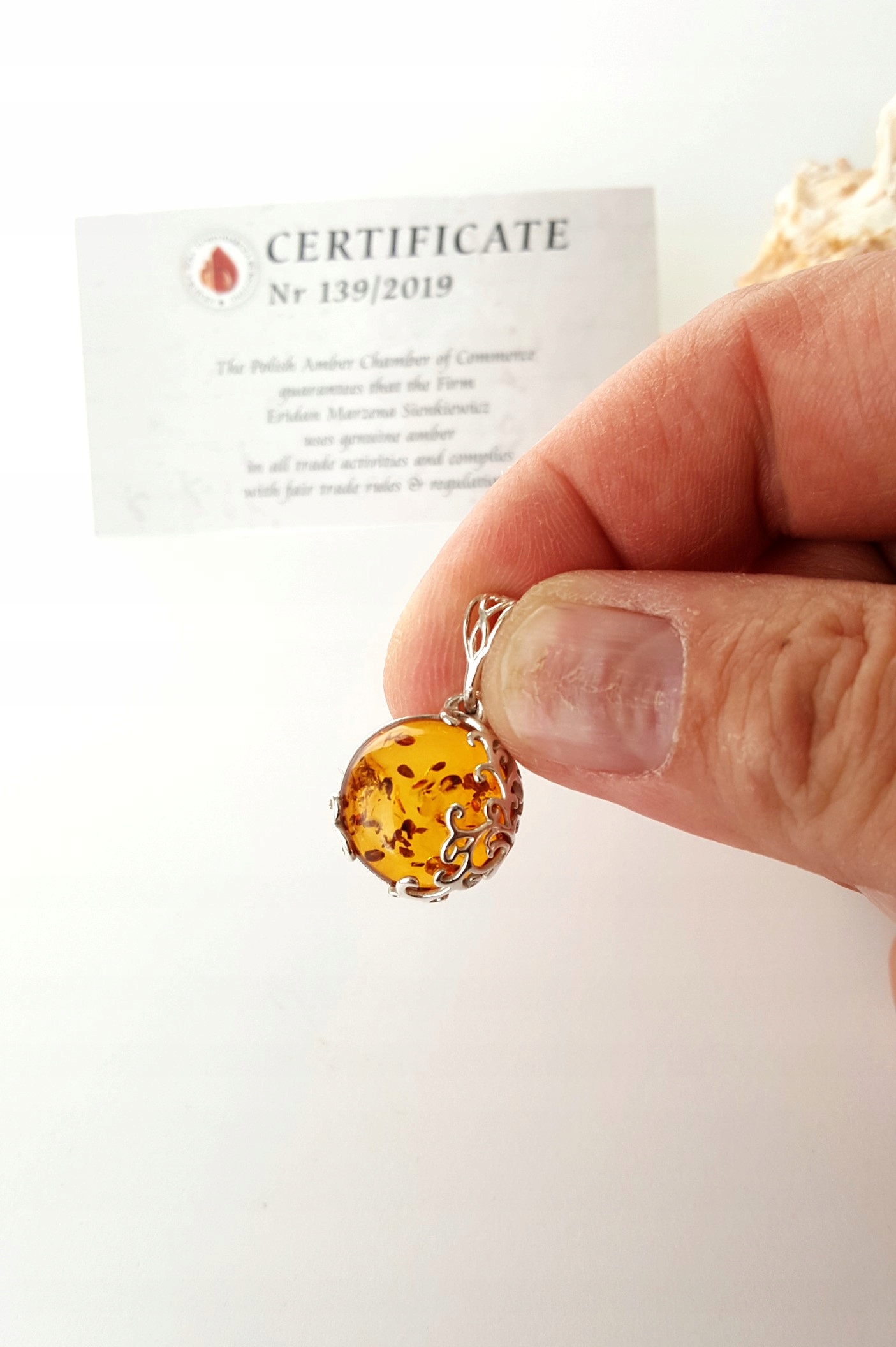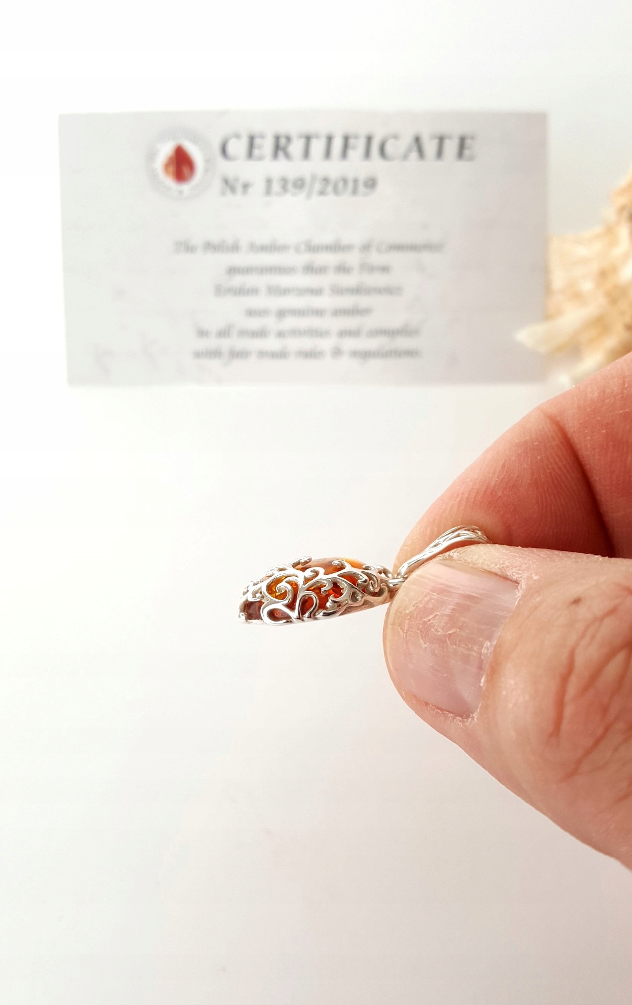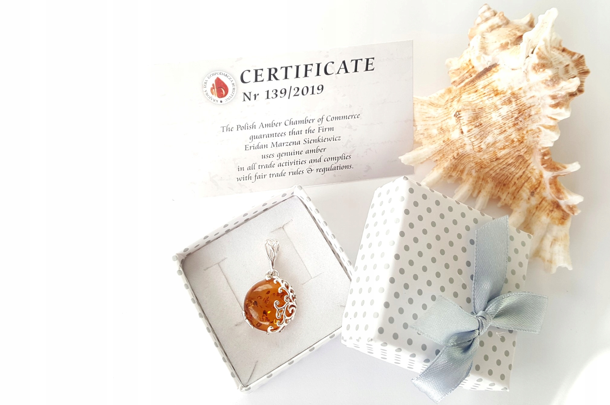 *** Naturalny i prawdziwy BURSZTYN *** SREBRO 925 *** CERTYFIKAT AUTENTYCZNOŚCI ***