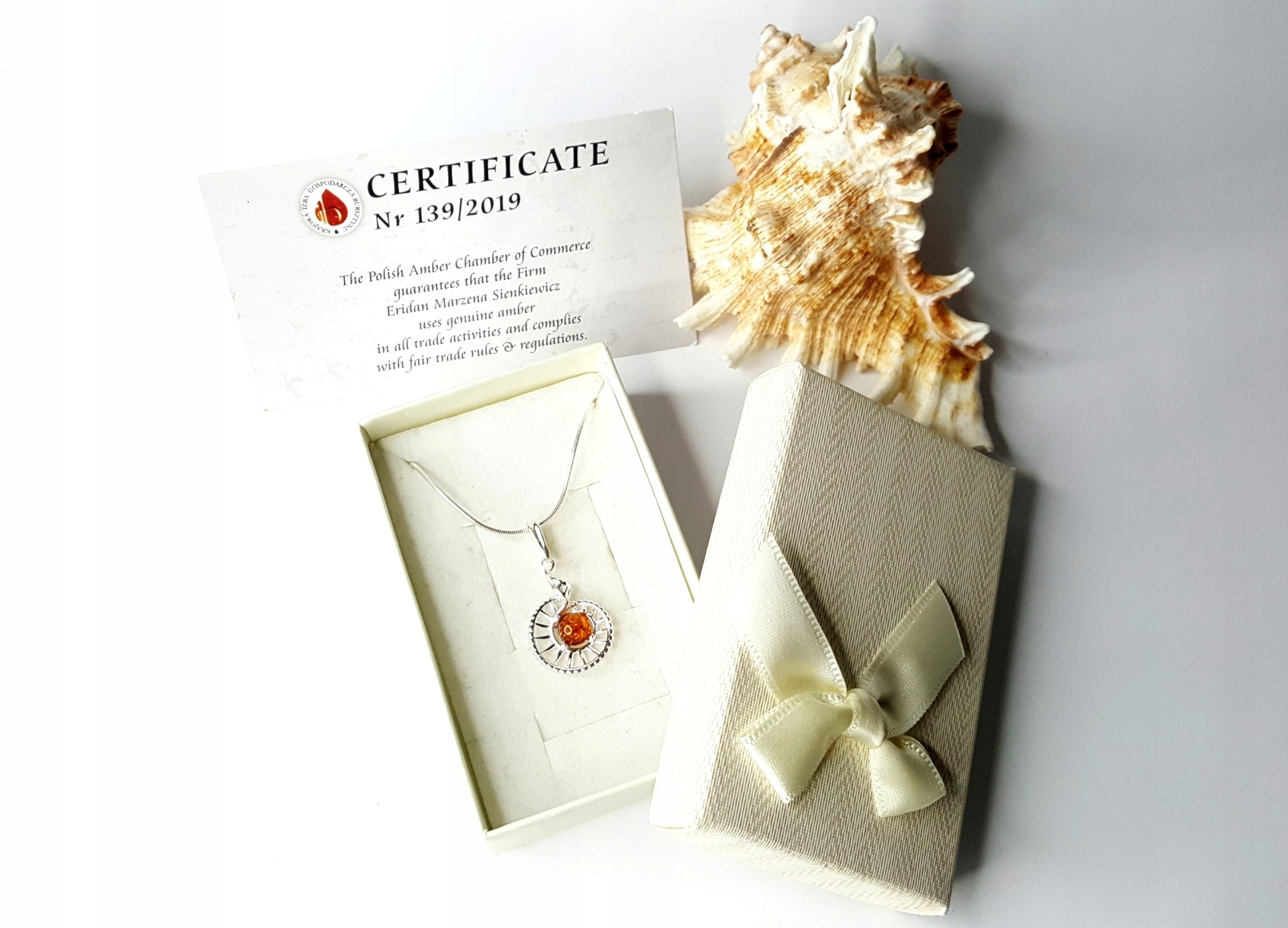 *** Naturalny i prawdziwy BURSZTYN *** SREBRO 925 *** CERTYFIKAT AUTENTYCZNOŚCI ***