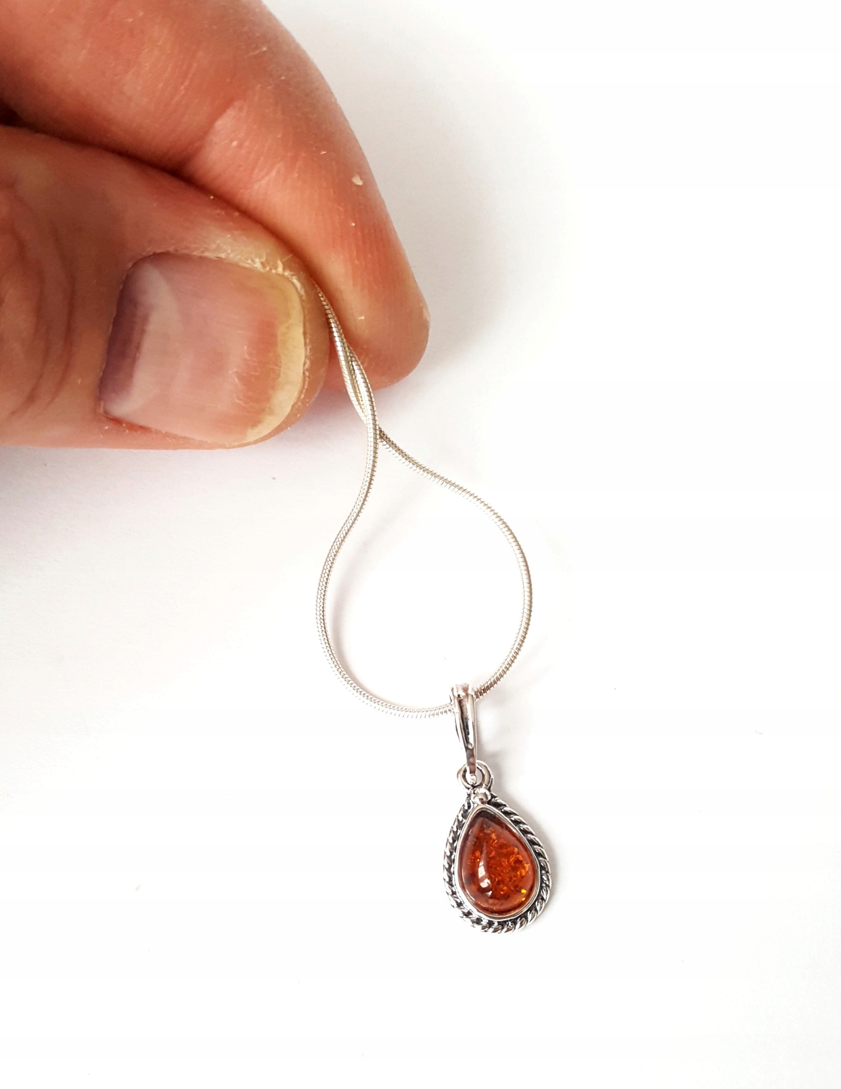Oferowany WISIOREK srebrny z BURSZTYNEM i z łańcuszkiem jest zupełnie nowy.